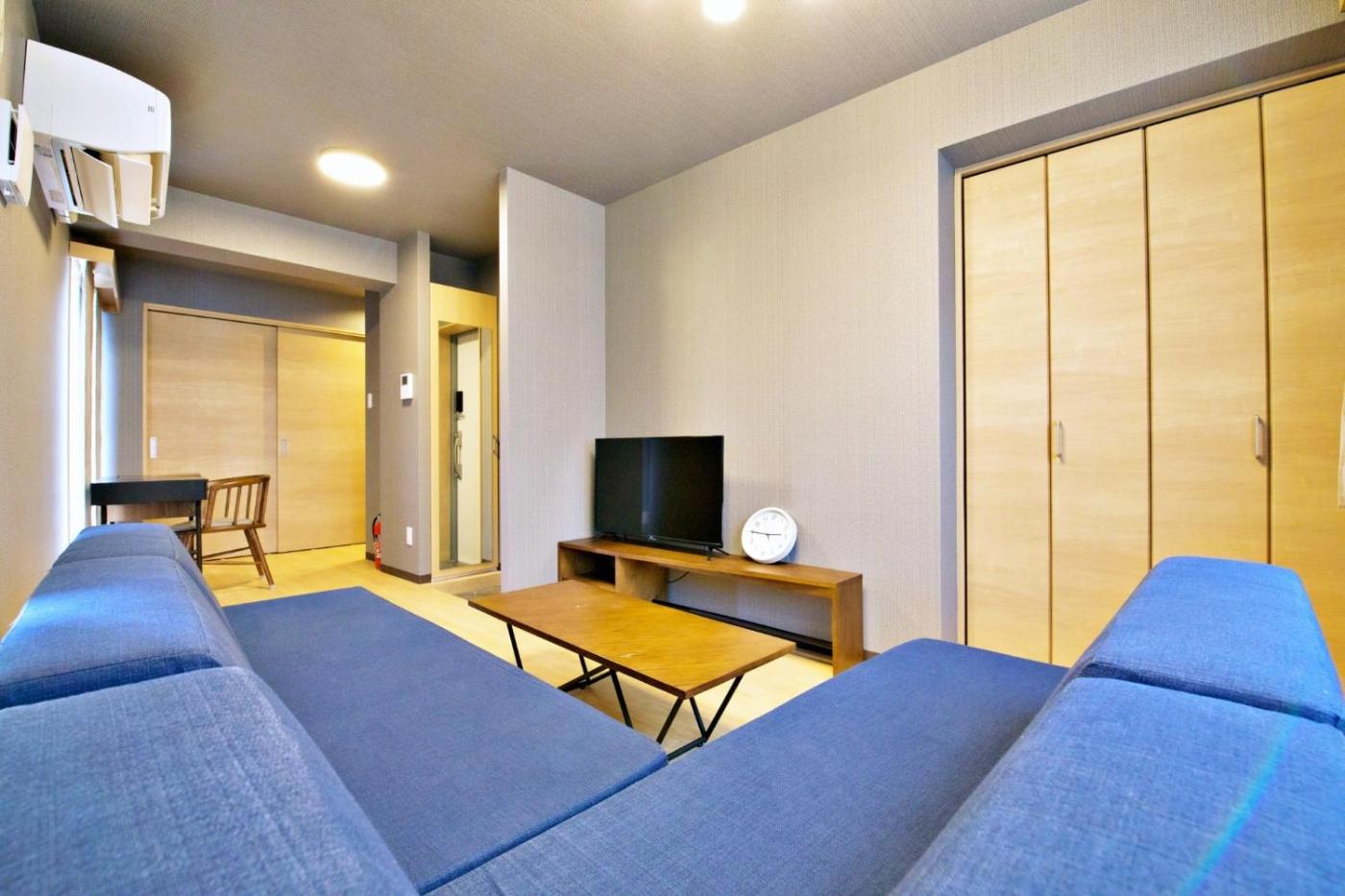 One-Bedroom Apartment. This air-conditioned apartment consists of 1 living room, 1 separate bedroom and 1 bathroom with a bath. The well-fitted kitchen features a stovetop, a refrigerator, kitchenware and a microwave. The apartment provides a washing machine, an electric kettle, a sofa, heating and a flat-screen TV. The unit offers 4 beds.
