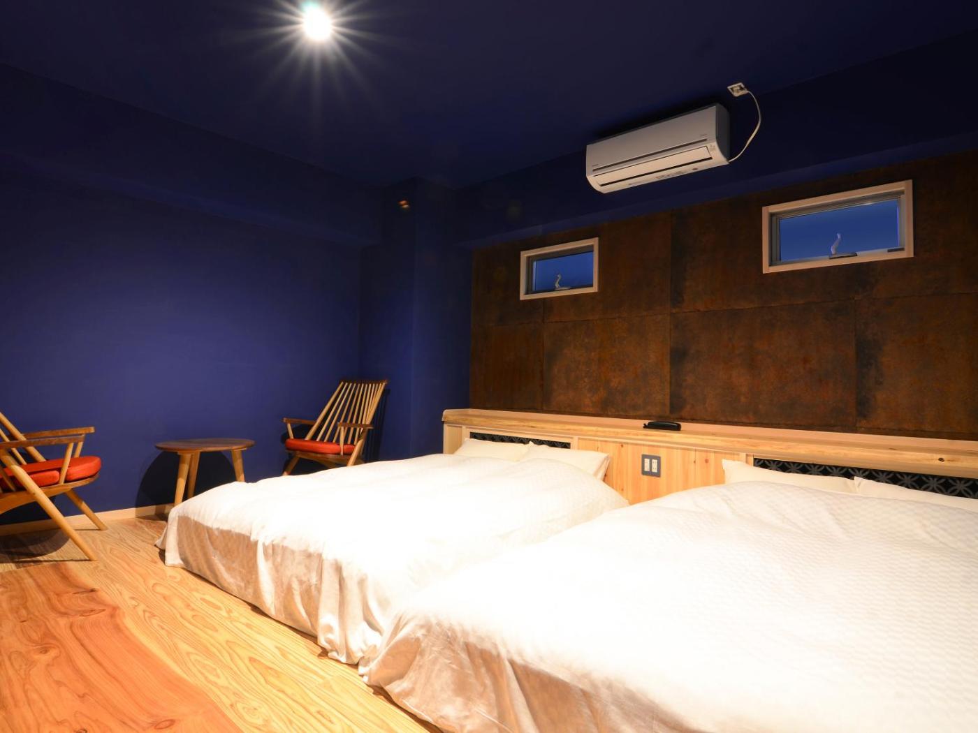 Family Room. The family room includes a private bathroom, well-fitted with a bath, a shower, a bidet, a hairdryer and slippers. The spacious family room features air conditioning, tatami, a tea and coffee maker, a seating area, as well as a flat-screen TV with streaming services. The unit has 2 beds and 3 futons.