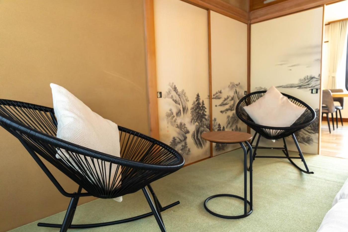 Two-Bedroom Villa. The villa features 2 bedrooms and 1 bathroom with a shower and free toiletries. The well-equipped kitchen has a stovetop, a refrigerator, kitchenware and a microwave. The villa offers a washing machine, tatami, a dining area, an electric kettle and a flat-screen TV with satellite channels. The unit offers 5 beds.