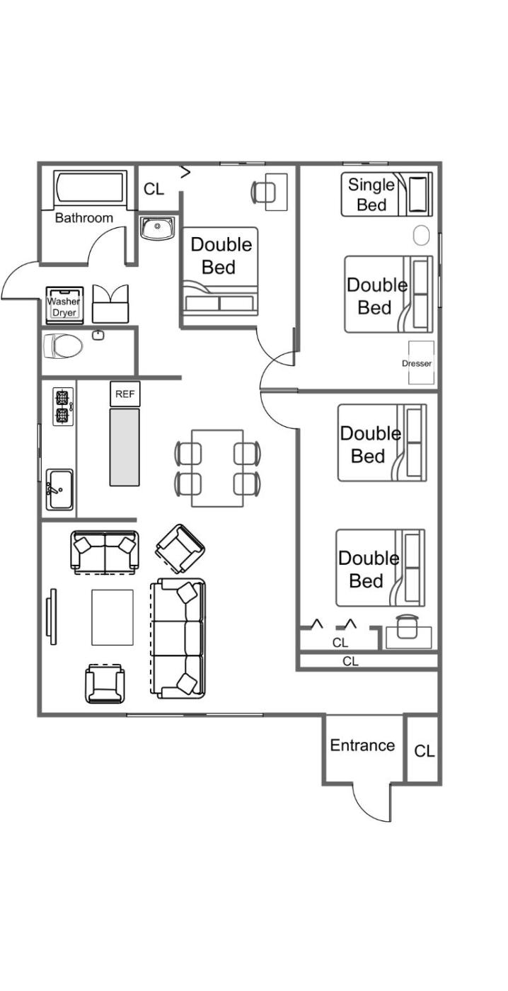 Three-Bedroom House. Boasting a private entrance, this air-conditioned holiday home comes with 1 living room, 3 separate bedrooms and 1 bathroom with a bath and a shower. Guests will find a stovetop, a refrigerator, kitchenware and an oven in the kitchen. The holiday home also includes a barbecue. Featuring a balcony with sea views, this holiday home also features a washing machine and a flat-screen TV. The unit has 5 beds.