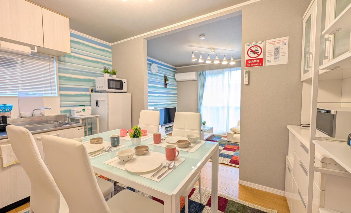 Two-Bedroom Apartment. The apartments kitchen is available for cooking and storing food. Featuring a balcony, this apartment also provides air conditioning, a washing machine and a flat-screen TV. The unit offers 3 beds and 3 futons.
