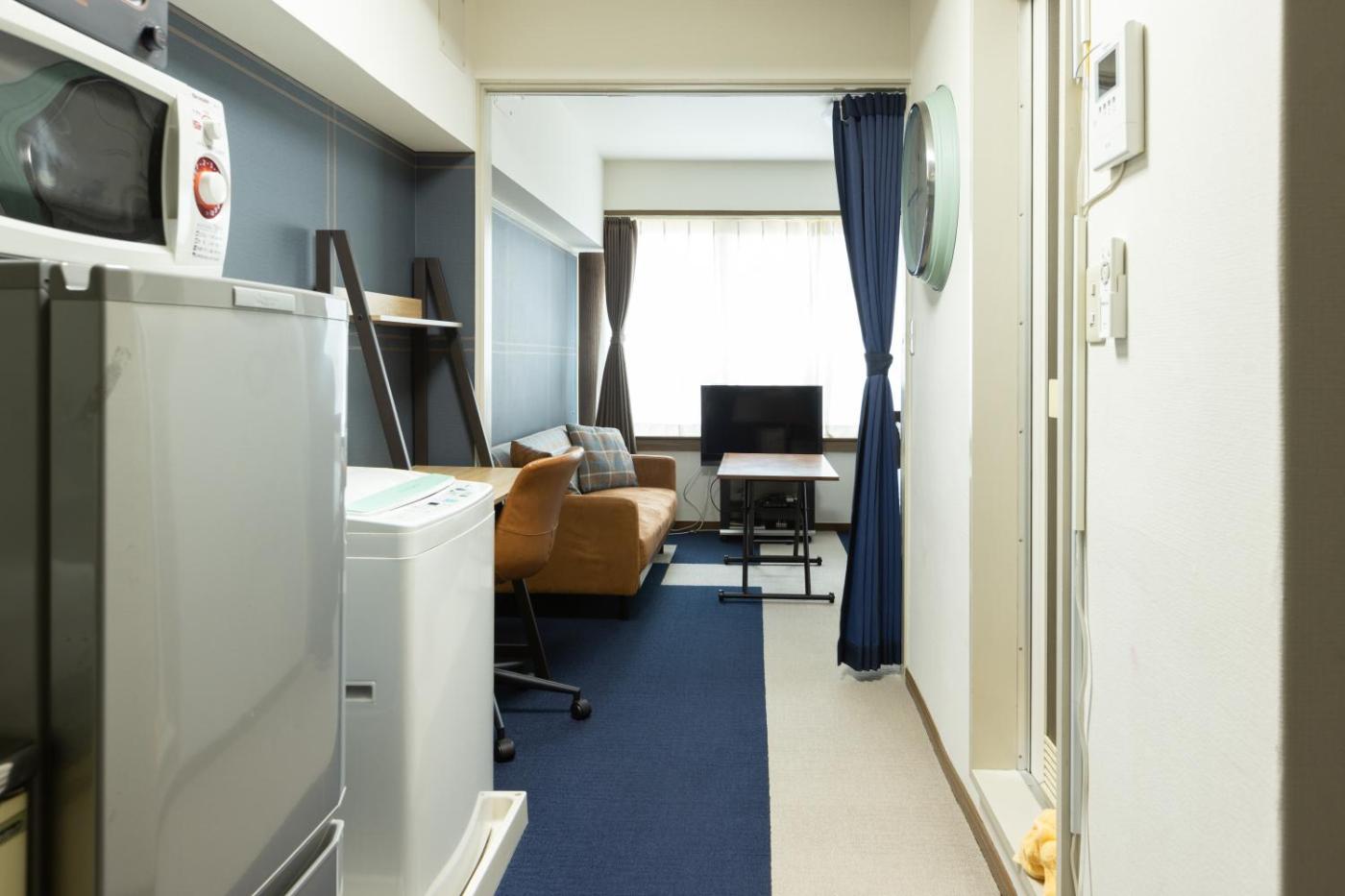 One-Bedroom Apartment. Boasting a private entrance, this air-conditioned apartment features a kitchen, 1 bedroom and 1 bathroom with a bath and a hairdryer. The well-fitted kitchen has a stovetop, a refrigerator, kitchenware and a microwave. The apartment features a washing machine, an electric kettle, a sofa, a carpeted floor and a TV with streaming services. The unit has 1 bed and 1 futon.