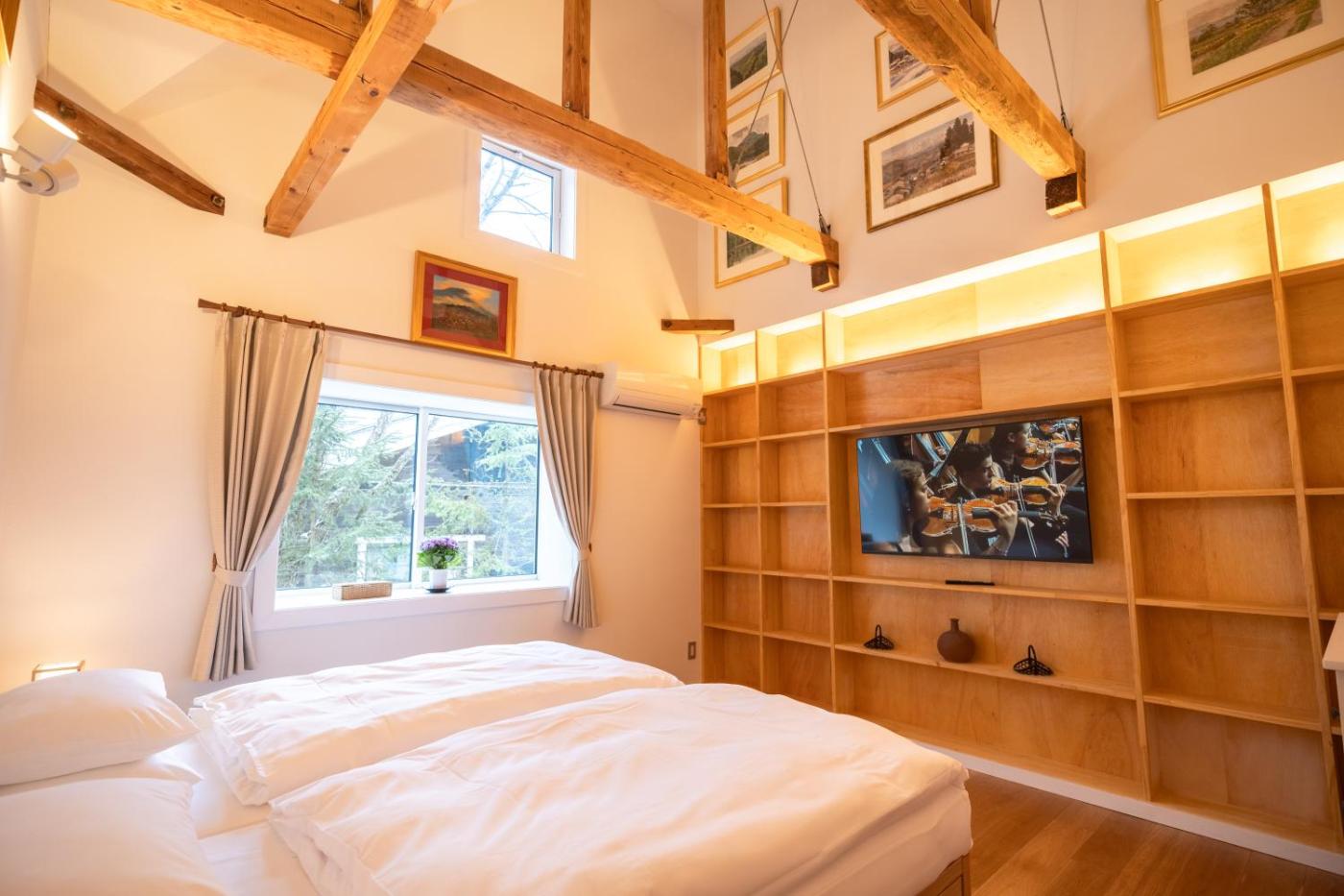 One-Bedroom Superior Apartment. This apartments special feature is the fireplace. This air-conditioned apartment comprises 1 living room, 1 separate bedroom and 1 bathroom with a shower. Meals can be prepared in the well-fitted kitchen, which comes with a stovetop, a refrigerator, a dishwasher and kitchenware. The apartment features tatami floors, a seating area with a flat-screen TV, a washing machine, soundproof walls as well as garden views. The unit offers 2 futons. ;