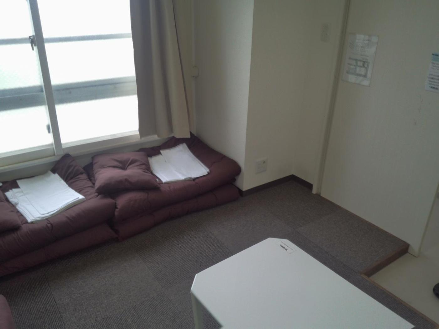 Japanese-Style Room with Shared Bathroom. This quadruple room features a shared bathroom, and air conditioning. The unit has 4 futons. ;