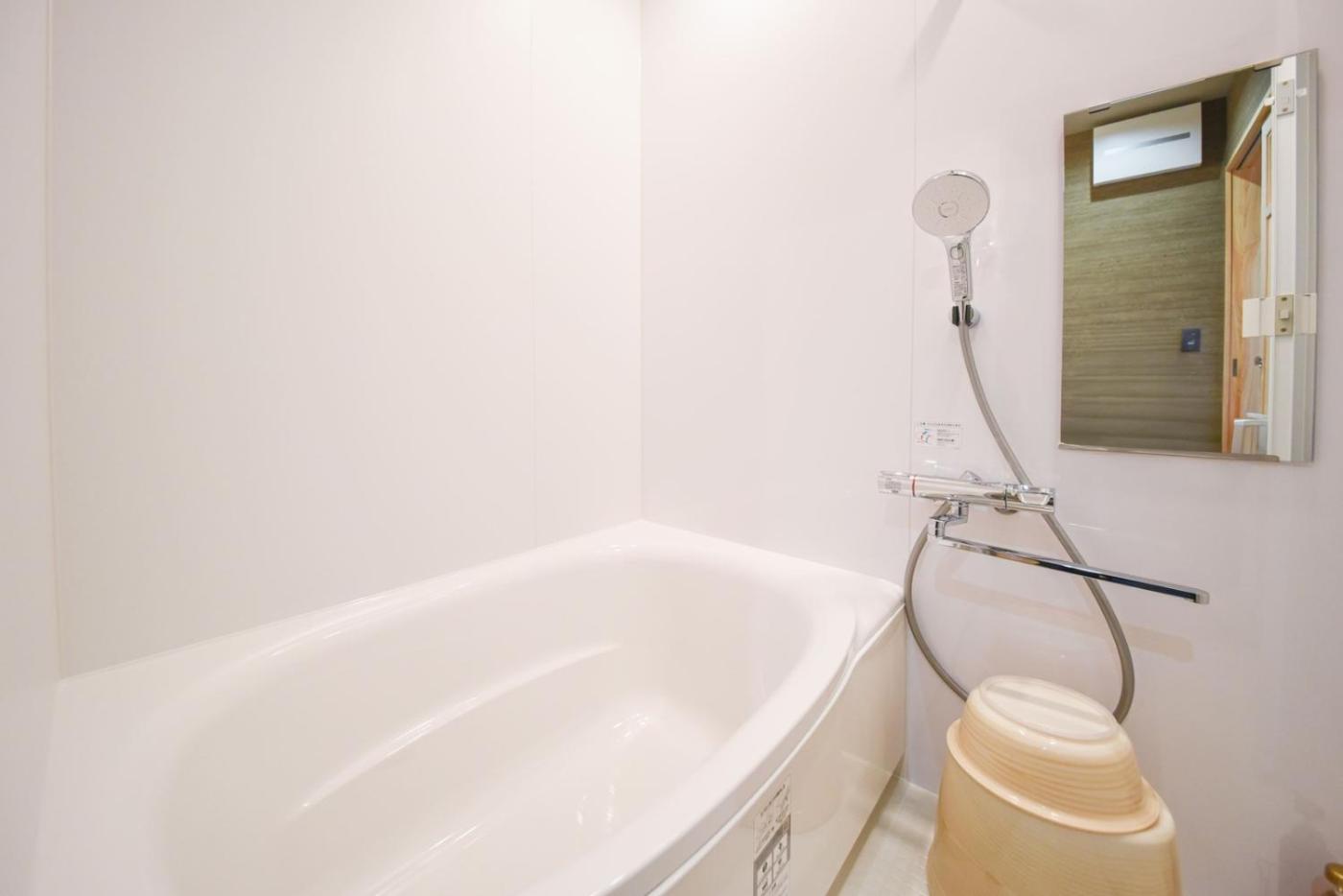 Family Room with Private Bathroom. Providing free toiletries and bathrobes, this family room includes a private bathroom with a bath, a shower and a hairdryer. Guests can make meals in the kitchen that is equipped with a stovetop, a refrigerator, kitchenware and a microwave. The spacious family room provides air conditioning, tatami, a private entrance, a dining area and a flat-screen TV with streaming services. The unit offers 2 beds and 6 futons. ;