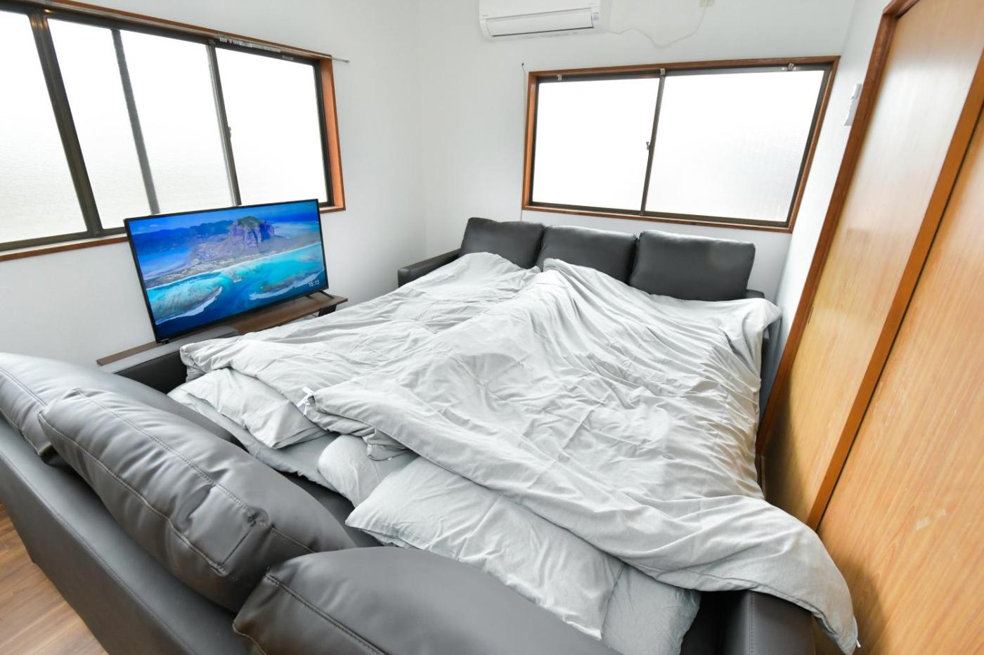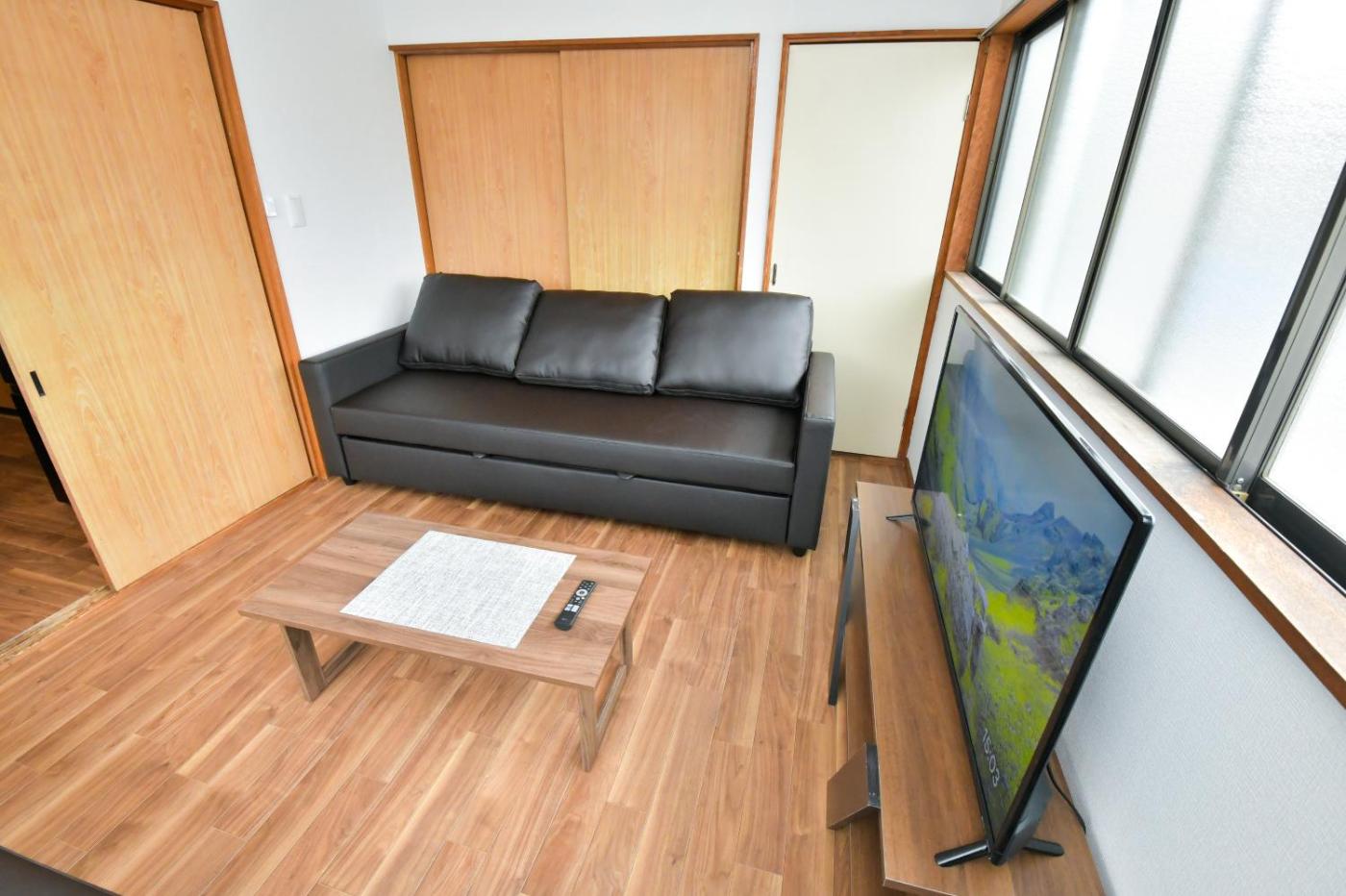 Two-Bedroom Apartment. This air-conditioned apartment includes 1 living room, 2 separate bedrooms and 1 bathroom with a bath. The well-fitted kitchen features a refrigerator, kitchenware and a microwave. This apartment has tatami, an electric kettle, a flat-screen TV and a balcony. The unit has 2 beds and 6 futons.