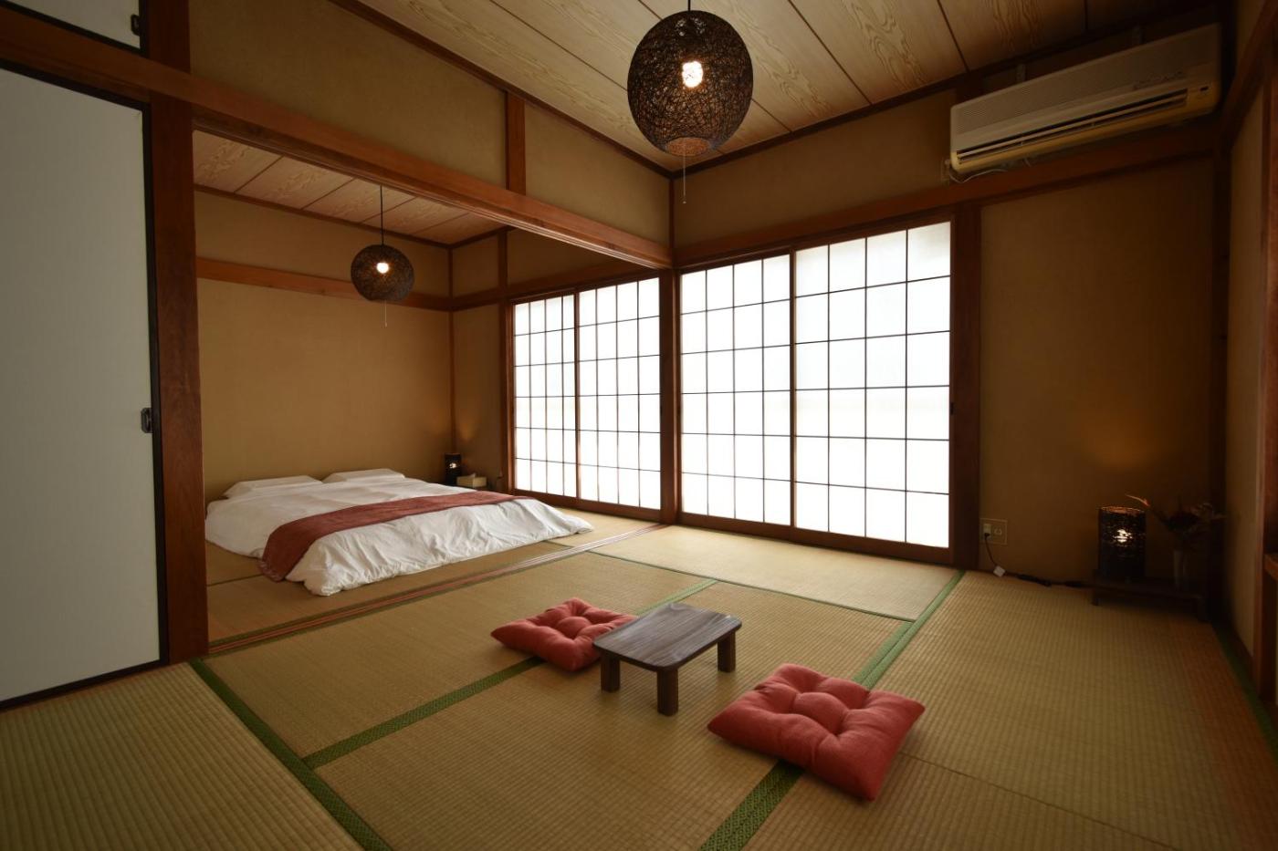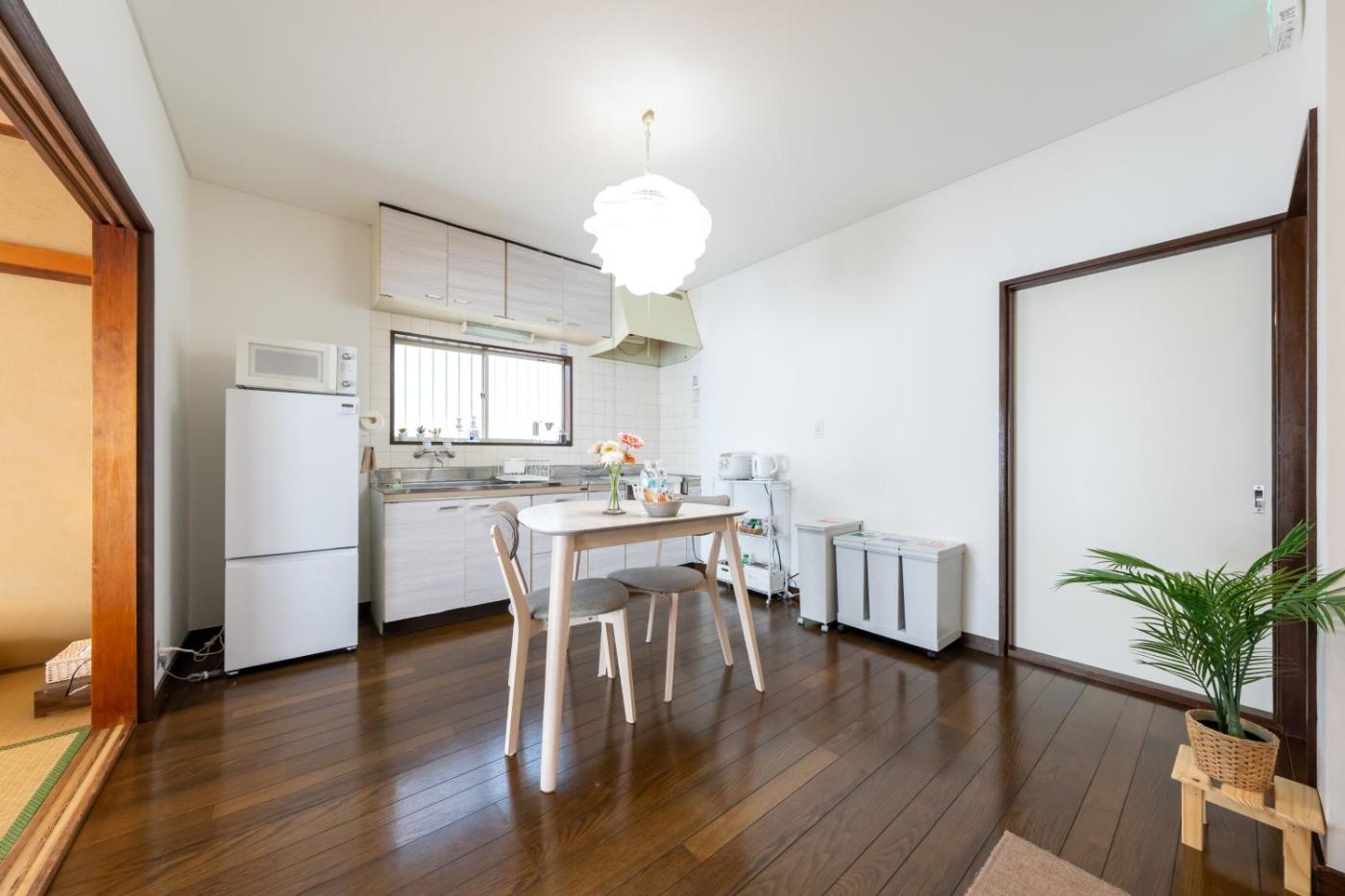 Two-Bedroom Apartment. This air-conditioned apartment consists of 1 living room, 2 separate bedrooms and 1 bathroom with a bath. In the fully equipped kitchen, guests will find a stovetop, a refrigerator, kitchenware and a microwave. The apartment provides a washing machine, tatami and a tea and coffee maker and chocolate is provided for guests. The unit offers 4 beds.