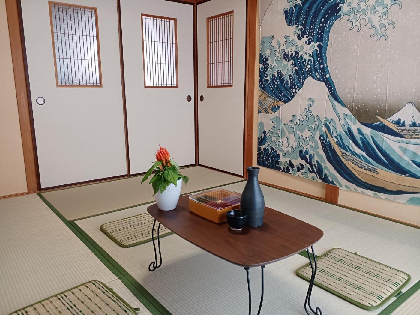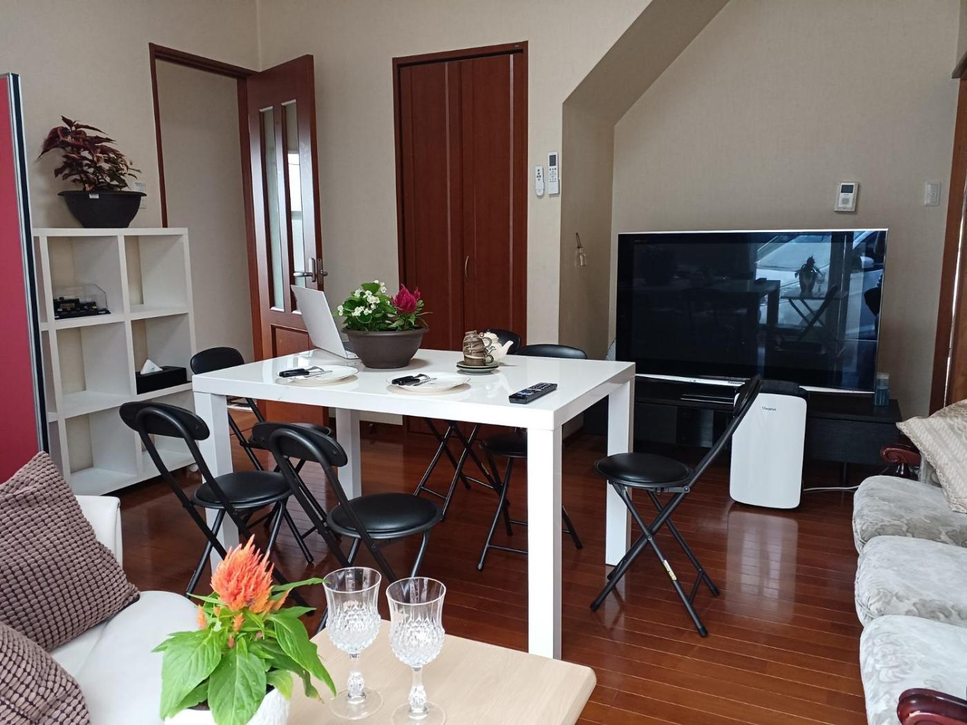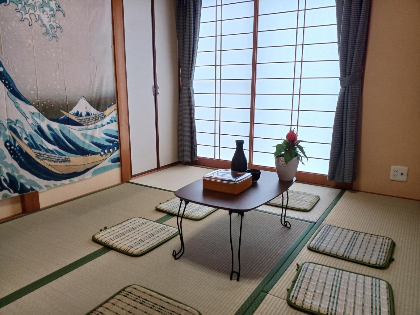 Three-Bedroom House. The air-conditioned holiday home has 3 bedrooms and 1 bathroom with a bath and a shower. Guests will find a stovetop, a refrigerator, kitchenware and a microwave in the fully equipped kitchen. The holiday home also features a barbecue. The holiday home features tatami floors, a seating area with a flat-screen TV, a washing machine, a coffee machine as well as a quiet street view. The unit has 4 beds and 3 futons.