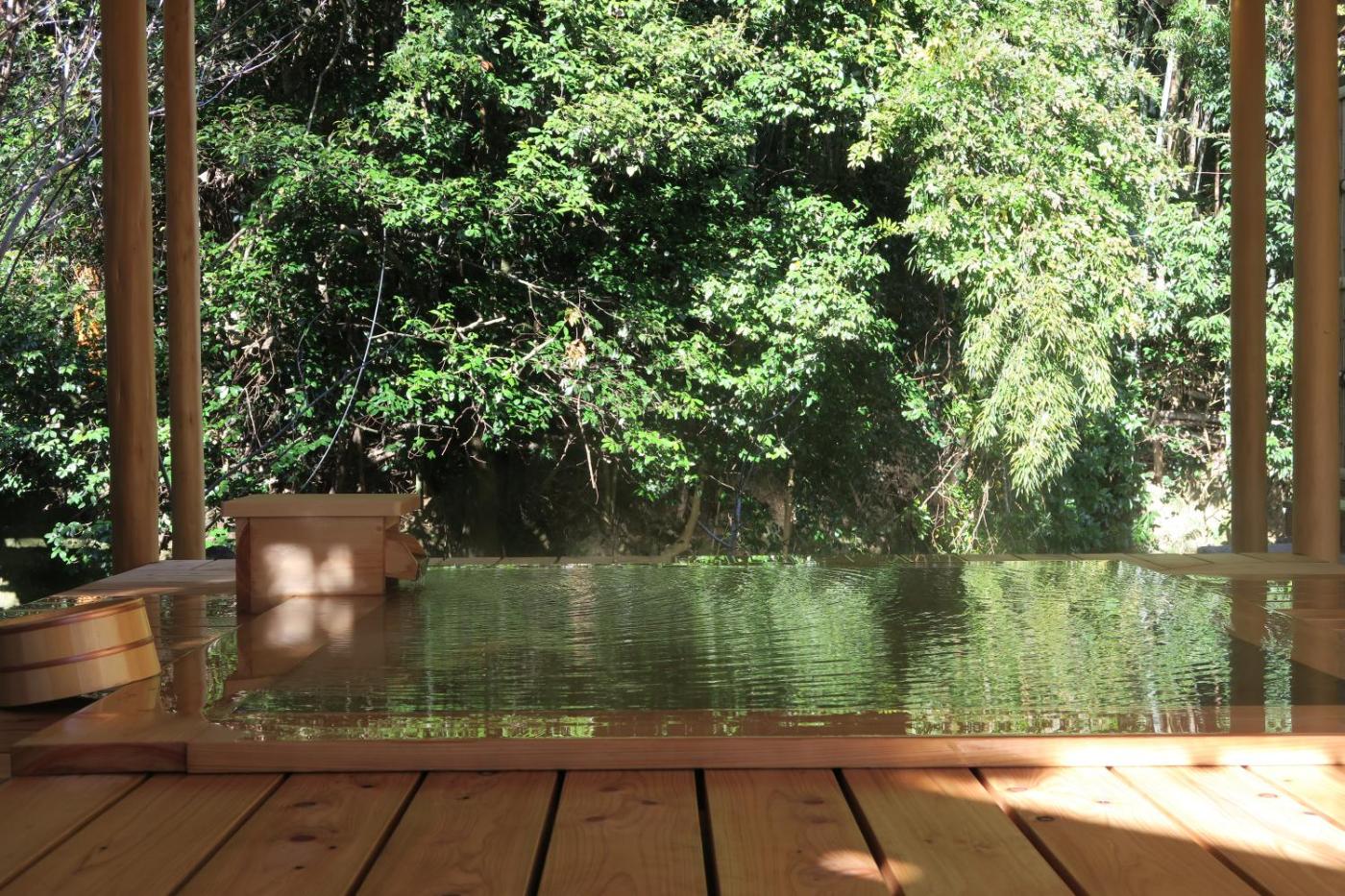 Japanese-Style Family Room with Open-Air Bath. This stand-alone family room features a private open-air hot spring bath and serene Japanese interior with a tatami (woven-straw) floor. Located in the Japanese gardens, guests have views to the river from the hot spring bath and terrace. ;