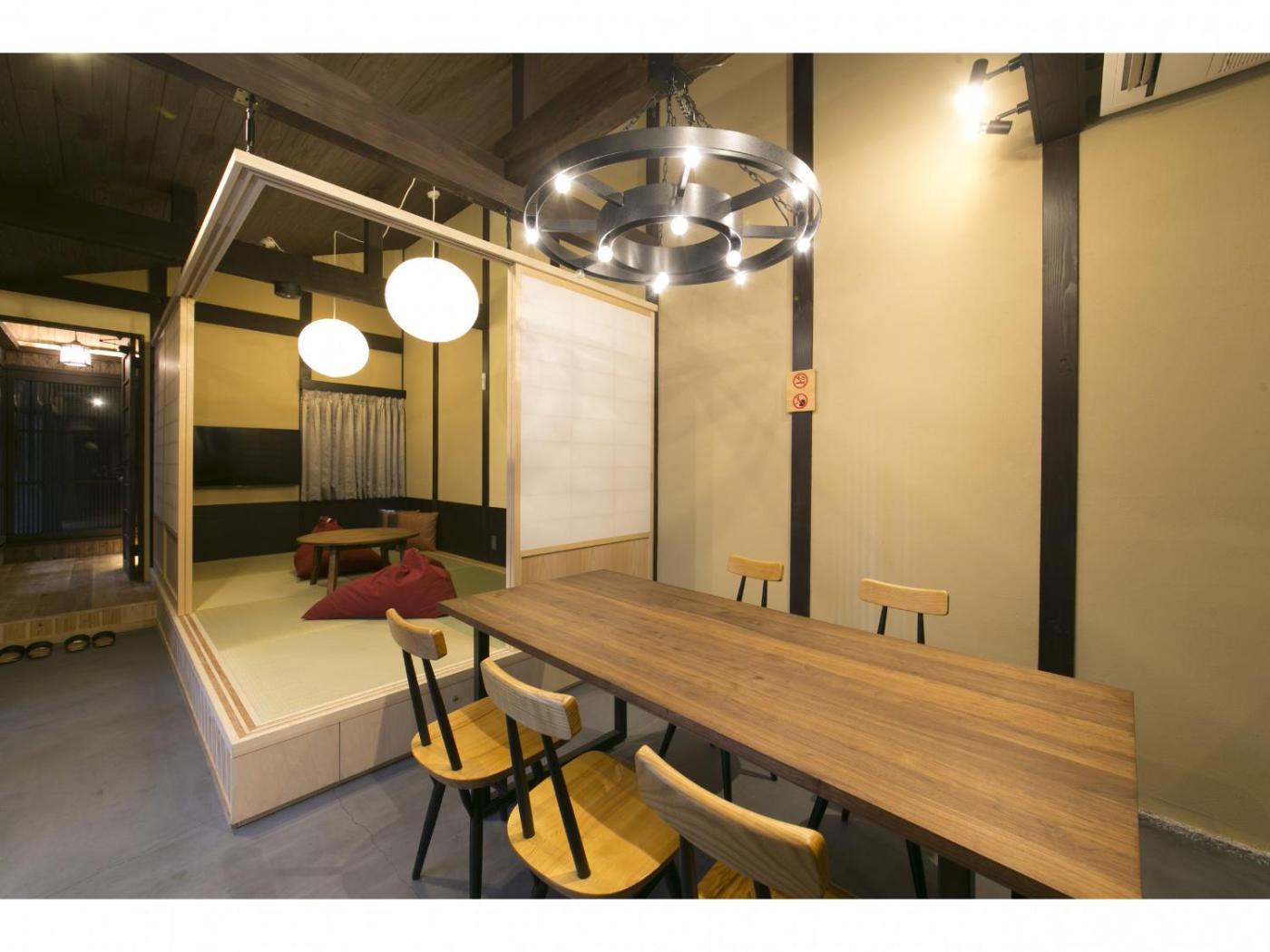 Japanese-Style Town House. The private open-air bath is a top feature of this holiday home. Featuring free toiletries and bathrobes, this holiday home includes a private bathroom with a bath, a shower and a bidet. The kitchenette features a refrigerator, kitchenware and a microwave. The air-conditioned holiday home features a flat-screen TV, a washing machine, tatami, a tea and coffee maker as well as ancourtyard view. The unit has 5 beds.