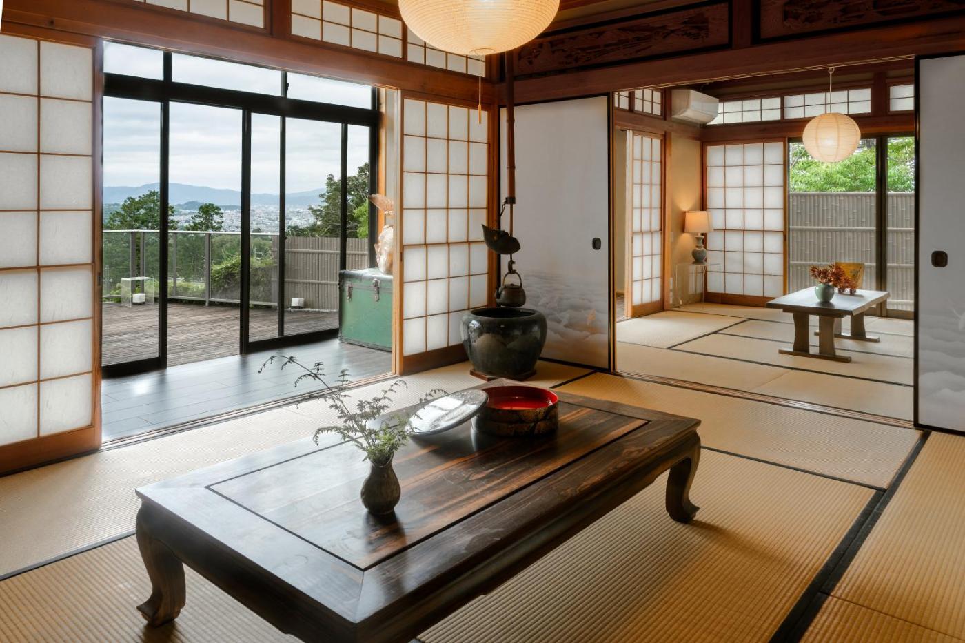 Villa. This spacious villa is comprised of 2 living rooms, 5 separate bedrooms and 3 bathrooms with a bath and free toiletries. Meals can be prepared in the kitchen, which is fitted with a stovetop, a refrigerator, a microwave and an electric kettle. The air-conditioned villa offers a flat-screen TV, a washing machine, tatami, a seating area as well as garden views. The unit offers 2 beds and 7 futons.