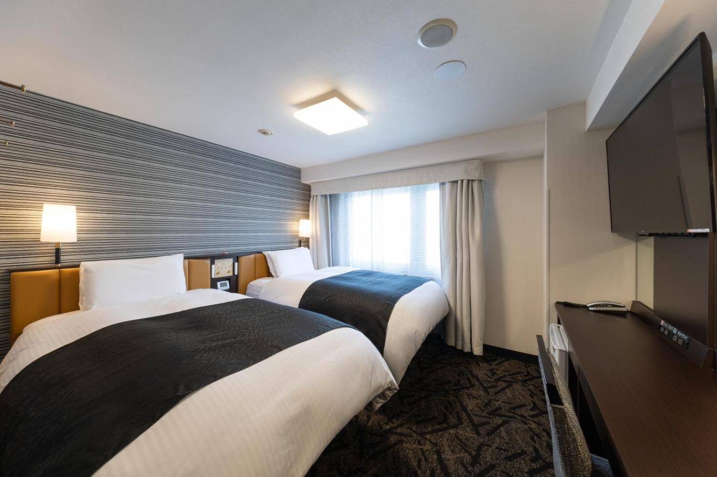 Twin Room - Non-Smoking. The "non-smoking" twin room includes a fridge,a 50-inch flat-screen TV and a work desk.The beds are equipped with two beds 110cm wide. The en suite bathroom comes with a washelt and bath amenities.Bath amenities including a toothbrushare provided, are made of enviromentally friendly materials. ;