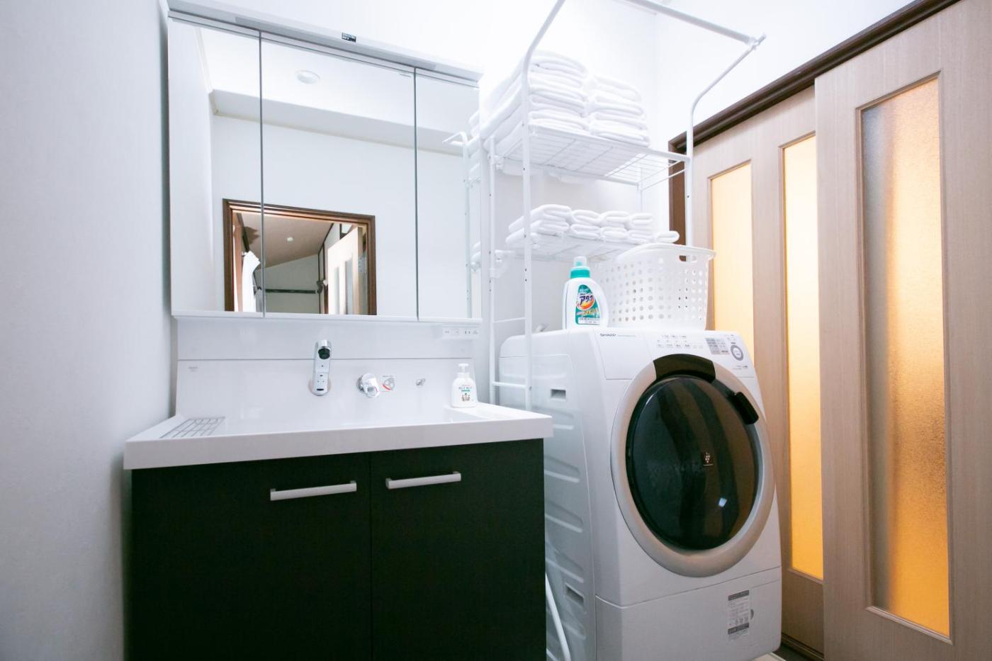 Two-Bedroom Apartment. Featuring a private entrance, this air-conditioned apartment comprises 1 living room, 2 separate bedrooms and 1 bathroom with a bath and a shower. Meals can be prepared in the kitchen, which comes with a refrigerator, kitchenware, a microwave and a toaster. The apartment provides a washing machine, tatami, a tea and coffee maker, a dining area, as well as a flat-screen TV. The unit offers 5 beds and 4 futons.