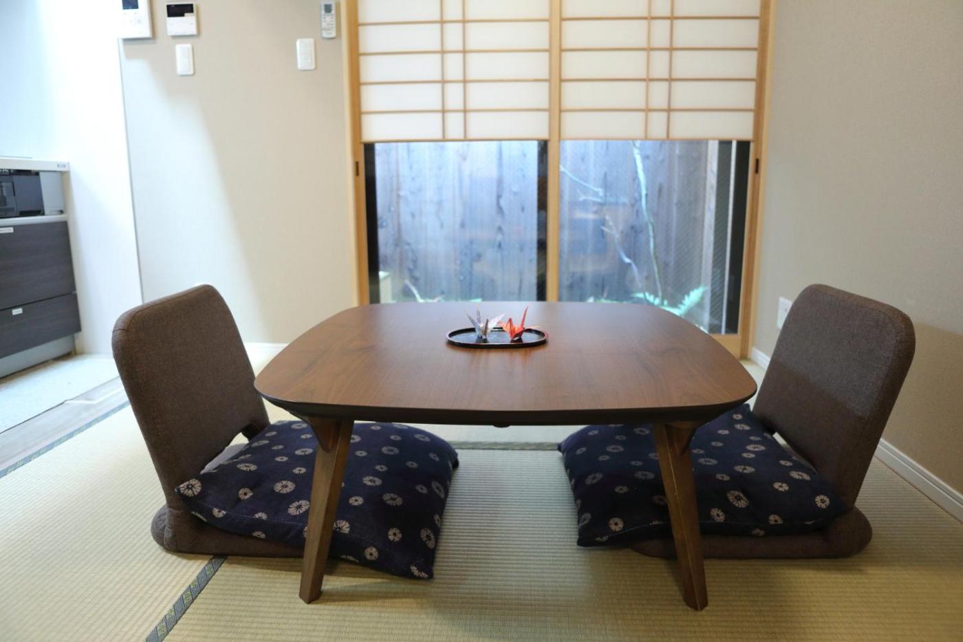 Japanese-Style Townhouse. This holiday home has a kitchenware and microwave. The room comes with a refrigerator, an induction heating cook-top, a hairdryer, an iron, bathroom dryer and washing machine. Guests will also find an electric kettle, tableware, toiletries such as toothbrushes and body towels, razors, shampoo, hair-conditioners and body shampoo.