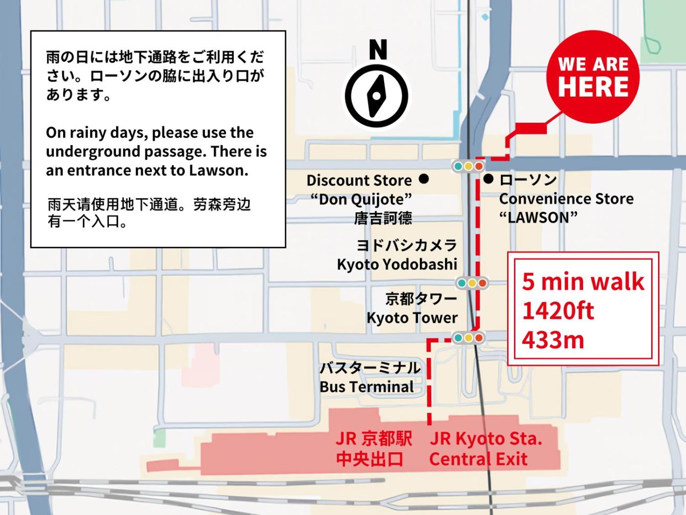 Kyoto Tower and Higashi Hongan-ji Temple are both a 5-minute walk from the hostel, and Nishi Hongan-ji Temple is a 15-minute walk. A convenience store is just a 1-minute walk away and a supermarket is a 3-minute walk away.