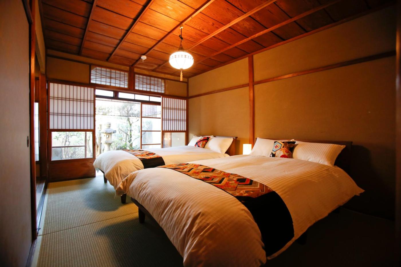 Villa. This villas standout feature is the hot tub. Boasting a private entrance, this air-conditioned villa features 1 living room, 4 separate bedrooms and 1 bathroom with a bath and a shower. In the fully equipped kitchen, guests will find a stovetop, a refrigerator, kitchenware and an oven. The villa has tatami floors, a seating area with a flat-screen TV, a washing machine, an electric kettle, as well as heating. The unit has 3 beds and 4 futons.
