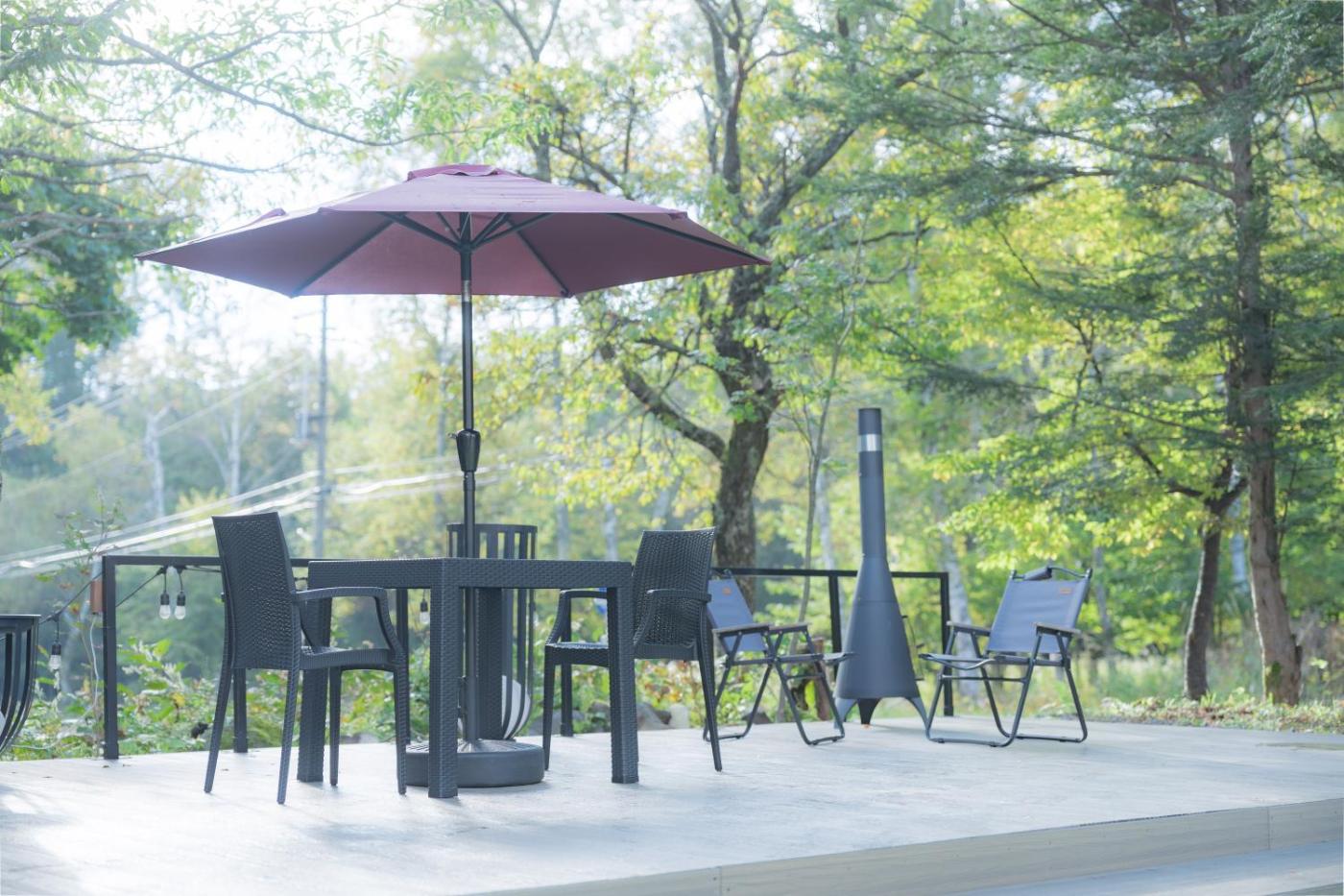 Japanese-Style Quadruple Room. The quadruple room features air conditioning, tatami, as well as a shared bathroom boasting a hairdryer and slippers. Among the room amenities are a tea and coffee maker, a seating area and a wardrobe as well as mountain views. The unit has 4 futons. ;
