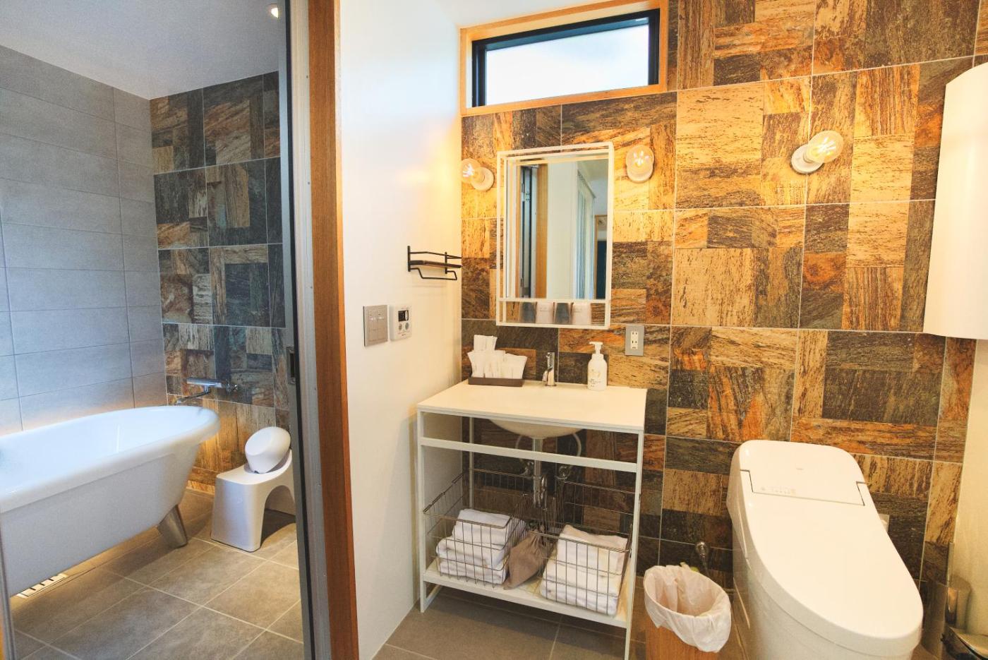 Family Studio. The spacious studio provides air conditioning, a washing machine, as well as a private bathroom featuring a bath and a shower. The studios kitchenette, which features a refrigerator and a microwave, is available for cooking and storing food. The studio features tatami, a private entrance, an electric kettle, tumble dryer and a flat-screen TV. The unit offers 2 beds and 4 futons. ;