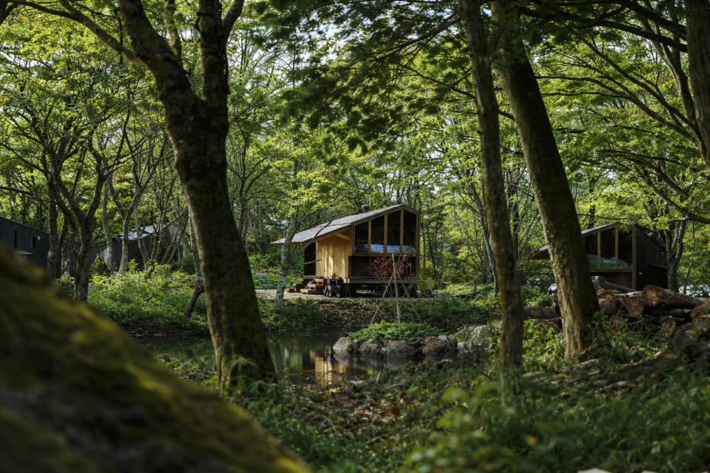 The wellness area at Earthboat Nasu is comprised of a sauna and a hot spring bath.