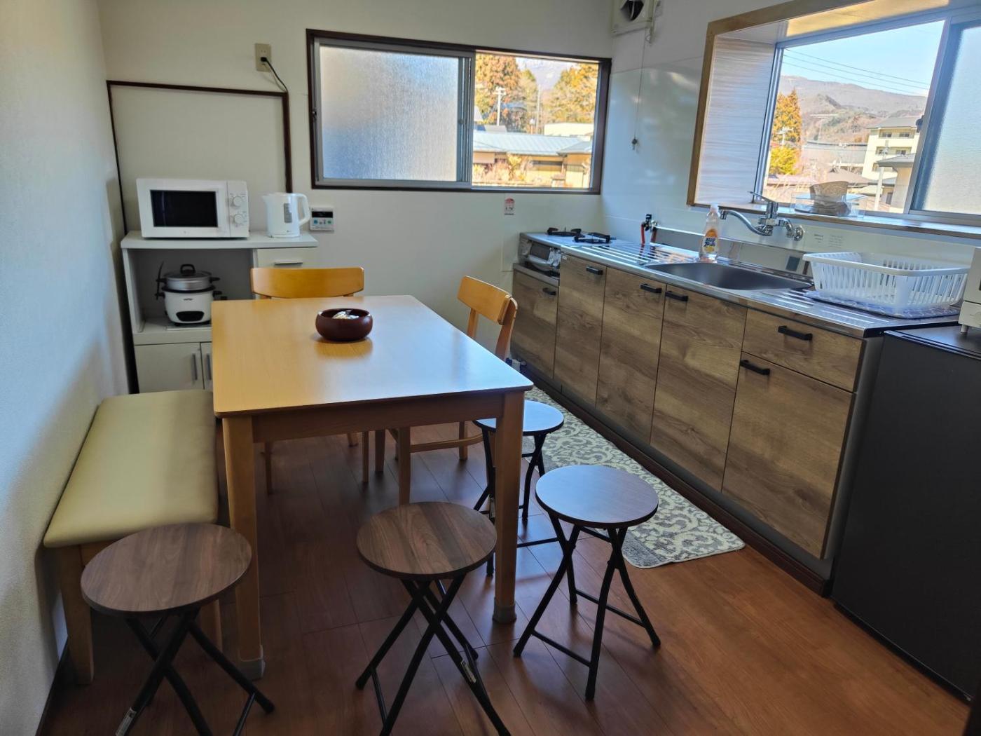 Four-Bedroom House. Featuring a private entrance, this air-conditioned holiday home comprises a kitchen, 4 bedrooms and 1 bathroom with a bath and a shower. Meals can be prepared in the kitchen, which comes with a refrigerator, kitchenware, a microwave and a toaster. The holiday home features tatami floors, a seating area, a wardrobe, an electric kettle as well as garden views. The unit offers 3 beds and 4 futons.