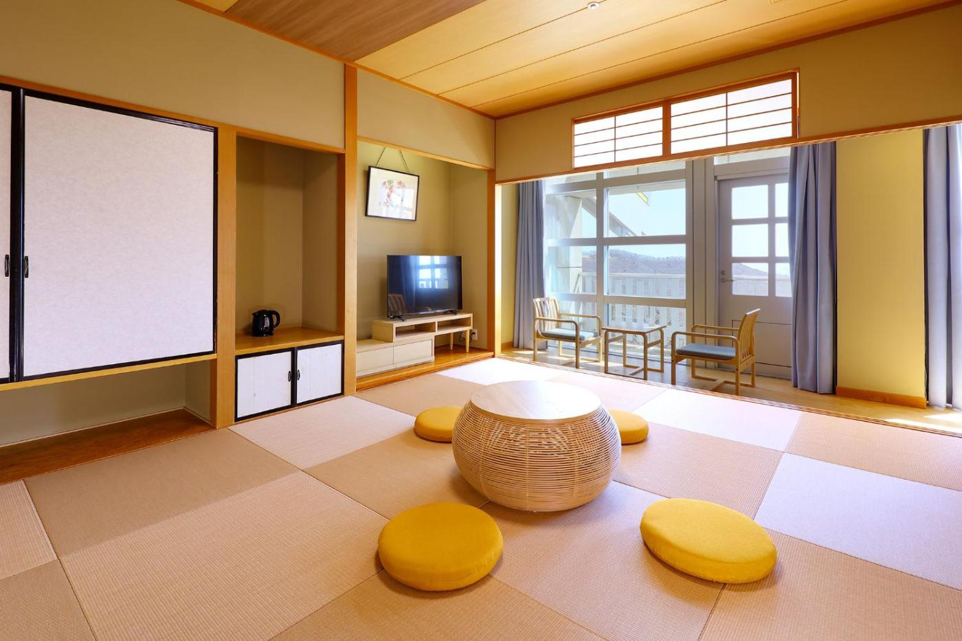 Japanese-Style Standard Room with Mountain View - Non-Smoking. Offering free toiletries, this family room includes a private bathroom with a bath, a shower and a hairdryer. The family room offers air conditioning, a safe deposit box, an electric kettle, heating and a flat-screen TV. The unit has 3 futons. ;