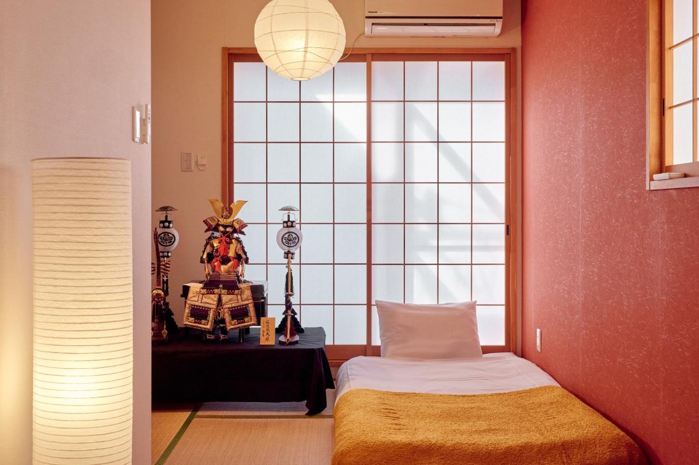 Three-Bedroom Apartment. Boasting a private entrance, this air-conditioned apartment comes with 1 living room, 3 separate bedrooms and 2 bathrooms with a bath and a bidet. The apartments kitchenette, which has a refrigerator and kitchenware, is available for cooking and storing food. The spacious apartment features a washing machine, tatami, an electric kettle, a sofa, as well as a flat-screen TV. The unit has 8 futons.