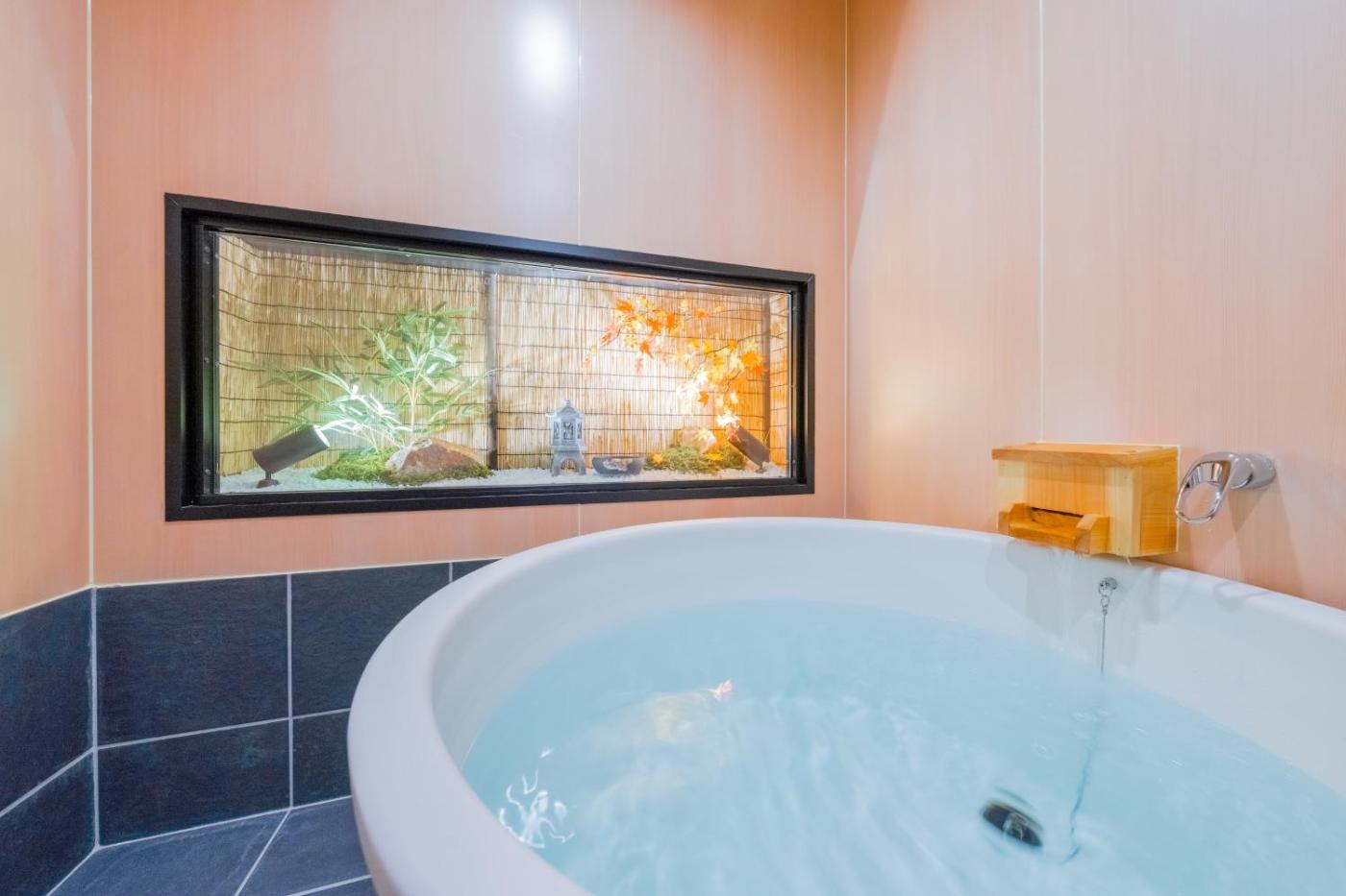 Four-Bedroom Deluxe Apartment. This apartment features a hot tub. Boasting a private entrance, this spacious apartment also features 4 separate bedrooms and 3 bathrooms with a bath and a shower. Guests can make meals in the kitchen that has a stovetop, a refrigerator, kitchenware and a microwave. The apartment features air conditioning, a washing machine, tatami, a coffee machine and a flat-screen TV. The unit has 9 beds.