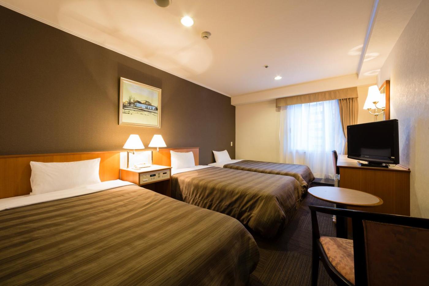 Japanese Style Triple Room - Non-Smoking. Providing free toiletries, this triple room includes a private bathroom with a bath, a shower and a bidet. This triple room is air-conditioned and features a flat-screen TV with satellite channels, an electric kettle, pajamas and heating. The unit offers 3 futons. ;
