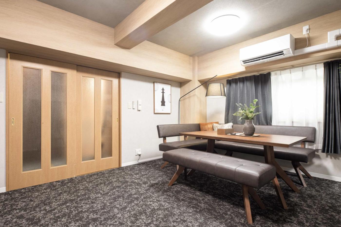 Deluxe Suite. Guests will have a special experience as the suite offers a hot tub. Featuring a private entrance, this spacious suite also consists of 5 separate bedrooms and 2 bathrooms with a walk-in shower and a bath. Guests can make meals in the kitchen that is equipped with a stovetop, a refrigerator, kitchenware and a microwave. The air-conditioned suite provides a flat-screen TV with streaming services, a washing machine, tatami, soundproof walls as well as city views. The unit offers 7 beds and 2 futons.