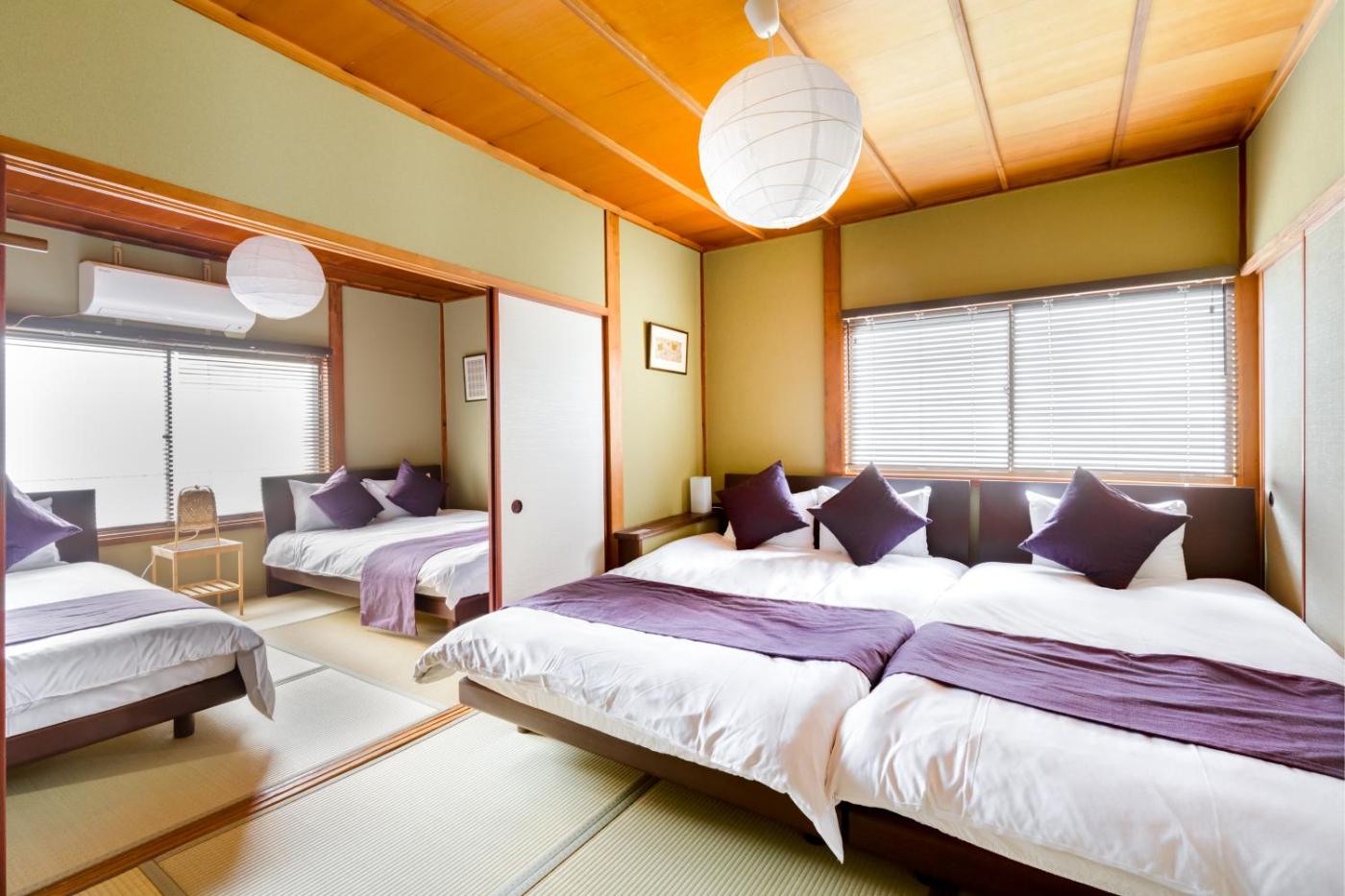 Three-Bedroom House. This holiday home features a hot tub. Boasting a private entrance, this spacious holiday home also features 3 bedrooms, a seating area and 1 bathroom with a bath and a shower. The well-equipped kitchen has a stovetop, a refrigerator, kitchenware and an oven. The air-conditioned holiday home features a flat-screen TV with streaming services, a washing machine, tatami and a tea and coffee maker. The unit has 6 beds.