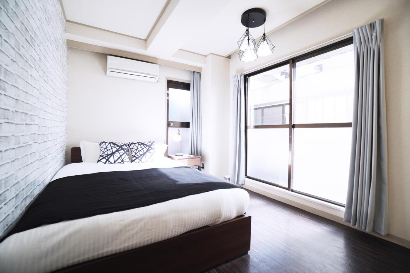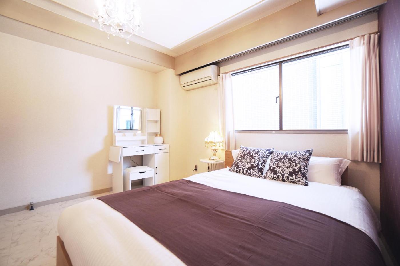 Apartment. This spacious apartment comes with 1 living room, 6 separate bedrooms and 2 bathrooms with a bath and a shower. In the fully equipped kitchen, guests will find a stovetop, a refrigerator, kitchenware and a microwave. The air-conditioned apartment features a flat-screen TV, a washing machine, tatami and an electric kettle. The unit has 5 beds and 6 futons.