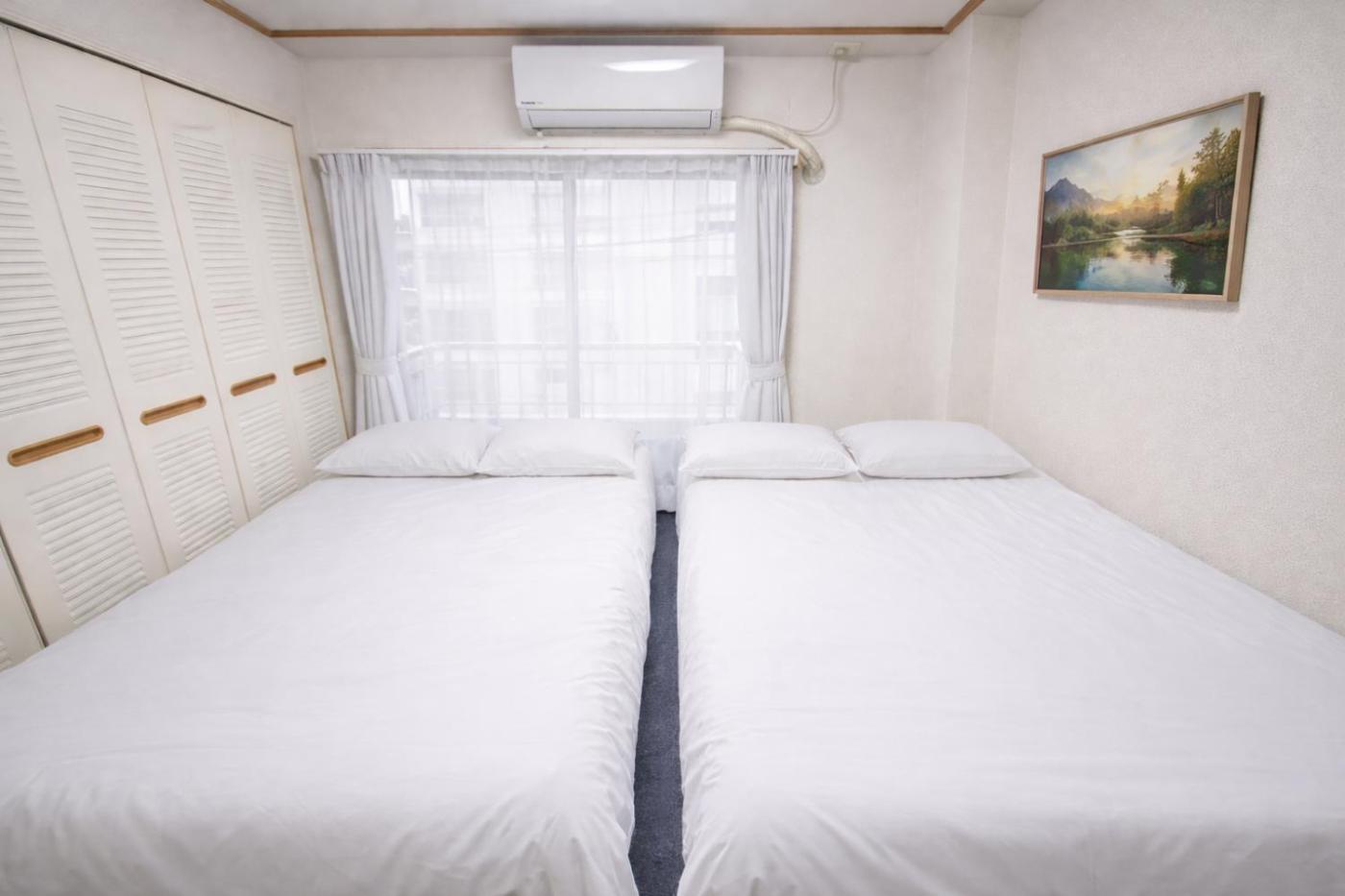One-Bedroom Apartment. Boasting a private entrance, this air-conditioned apartment features a kitchenette, 1 bedroom and 1 bathroom with a bath and a shower. The fully equipped kitchenette has a stovetop, a refrigerator, kitchenware and a microwave. The apartment features a washing machine, a dining area, an electric kettle along with a balcony. The unit has 2 beds.