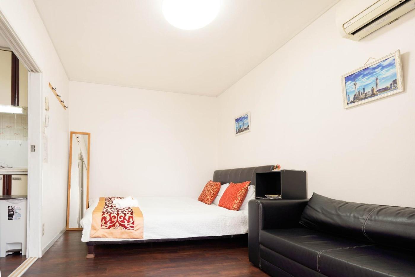 Three-Bedroom Apartment. This apartments special feature is the hot tub. This spacious apartment consists of 1 living room, 3 separate bedrooms and 1 bathroom with a bath and free toiletries. The fully equipped kitchen has a stovetop, a refrigerator, kitchenware and a microwave. This apartment is air-conditioned and features a seating area with a TV, a washing machine, tatami, a dining area, as well as an electric kettle. The unit offers 2 beds and 5 futons.