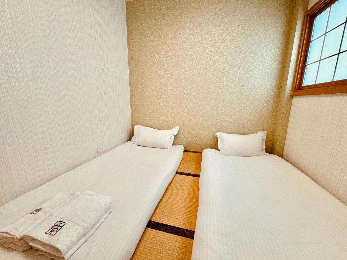 Twin Room with Private Bathroom. The twin room offers air conditioning, a washing machine, as well as a private bathroom featuring a bath and a shower. Meals can be prepared in the kitchen, which comes with a refrigerator, kitchenware, a microwave and an electric kettle. The twin room features a TV, tatami, a sofa and heating. The unit offers 2 beds. ;