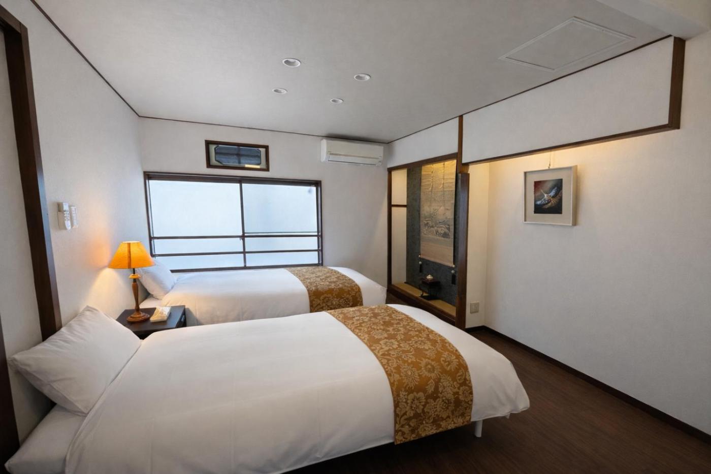 Three-Bedroom Villa. The hot tub is a top feature of this villa. Boasting a private entrance, this air-conditioned villa comes with 1 living room, 3 separate bedrooms and 1 bathroom with a bath and a shower. The villas kitchen, which has kitchenware, is available for cooking and storing food. The villa features a washing machine, tatami, a dining area, a flat-screen TV with streaming services, as well as garden views. The unit has 2 beds and 5 futons.