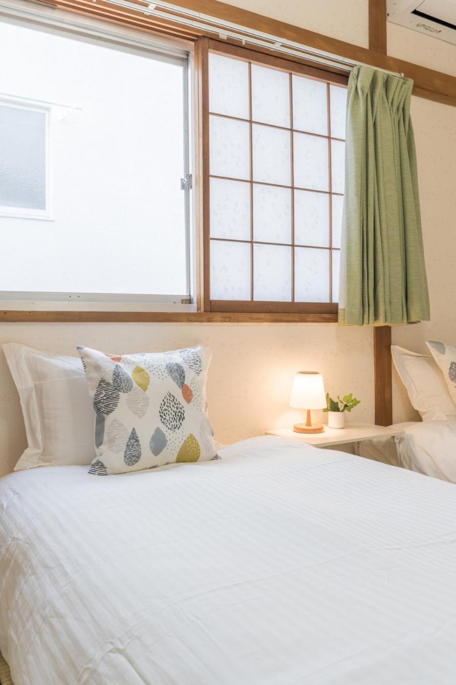 Holiday Home. This holiday home comes with 1 living room, 2 separate bedrooms and 1 bathroom with a bath and free toiletries. The fully equipped kitchen has a refrigerator, kitchenware, a microwave and a tea and coffee maker. The holiday home features air conditioning, a washing machine, tatami as well as a balcony with a quiet street view. The unit has 1 bed and 5 futons.