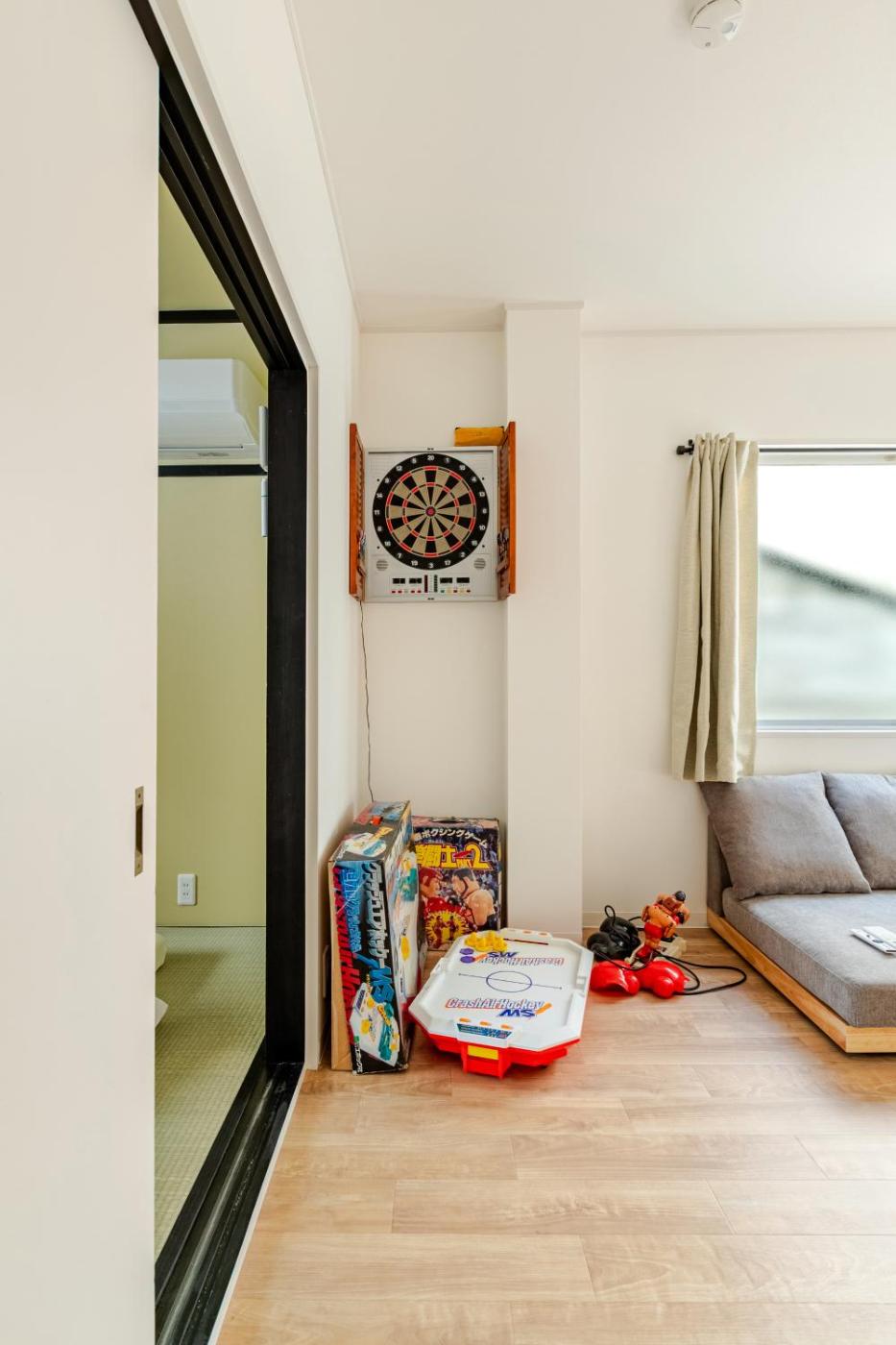 You can play darts at the apartment. An indoor play area is also available for guests at NEW OPEN!! 菊水堂 Kikusui Hotel 大阪貸切一棟貸し USJすぐ 駅徒歩4分 最大12名様 屋上テラス有 プロジェクター有 長期滞在可 家族やグループに.