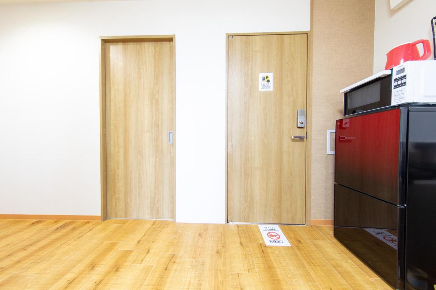 Two-Bedroom Apartment. Boasting a private entrance, this air-conditioned apartment comes with 1 living room, 2 separate bedrooms and 1 bathroom with a shower and a bidet. The kitchen features a stovetop, a refrigerator and a microwave. The spacious apartment features a washing machine, a seating area, a sofa, parquet floors, as well as a flat-screen TV. The unit has 1 bed and 10 futons.