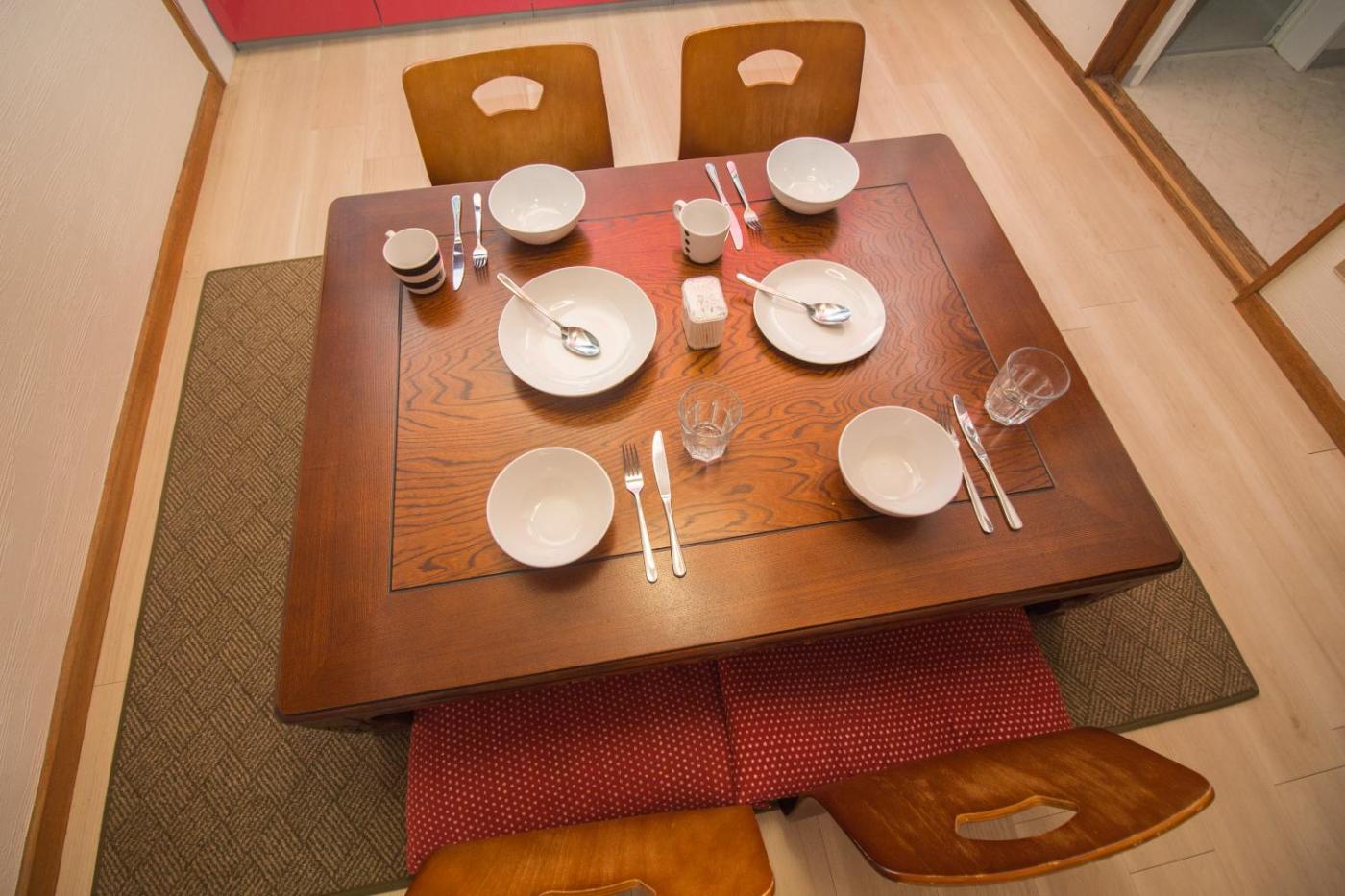 Three-Bedroom Apartment. Featuring a private entrance, this air-conditioned apartment consists of a kitchen, 3 bedrooms and 1 bathroom with a bath and a shower. The well-fitted kitchen features a stovetop, a refrigerator and a microwave. The apartment provides a washing machine, tatami, an electric kettle, heating, as well as a flat-screen TV. The unit offers 2 beds and 8 futons.