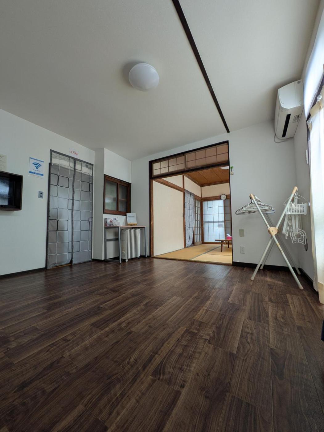 Two-Bedroom Apartment. Meals can be prepared in the kitchenette, which comes with a stovetop, a refrigerator, kitchenware and a microwave. This apartment is air-conditioned and features a washing machine, tatami and a private entrance. The unit offers 8 futons.
