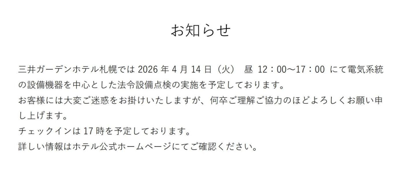 Mitsui Garden Hotel Sapporo is located a 4-minute walk from Sapporo Station and offers a variety of guest rooms with free Wi-Fi. A large public bath is available on the second floor.