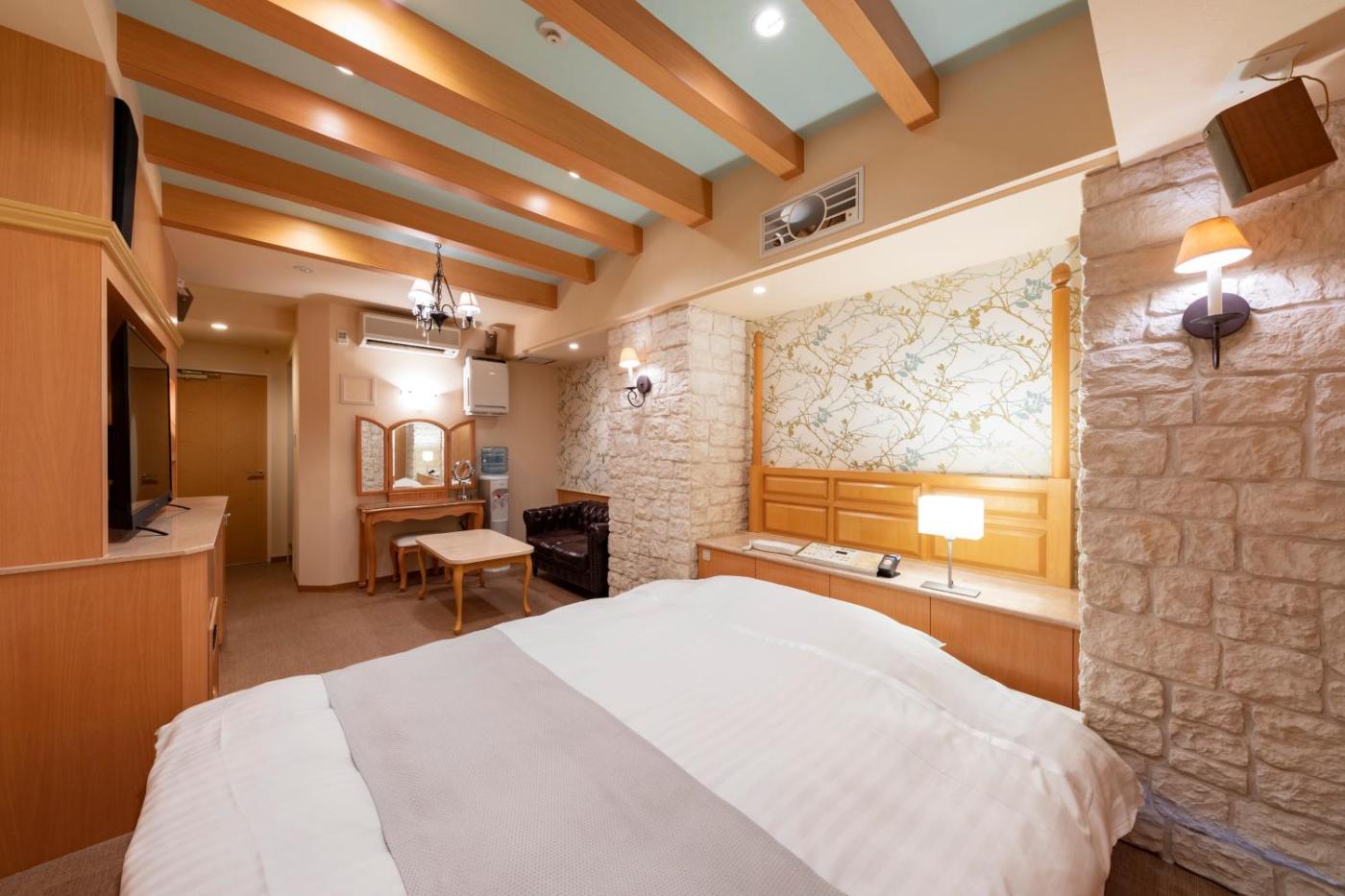 At the love hotel, every room has a desk and a flat-screen TV. The private bathroom is equipped with a bidet, free toiletries and a hairdryer.