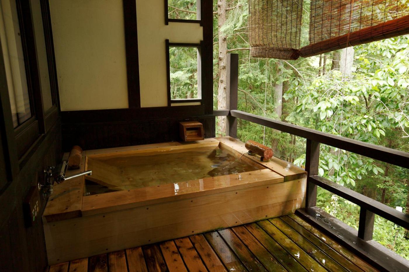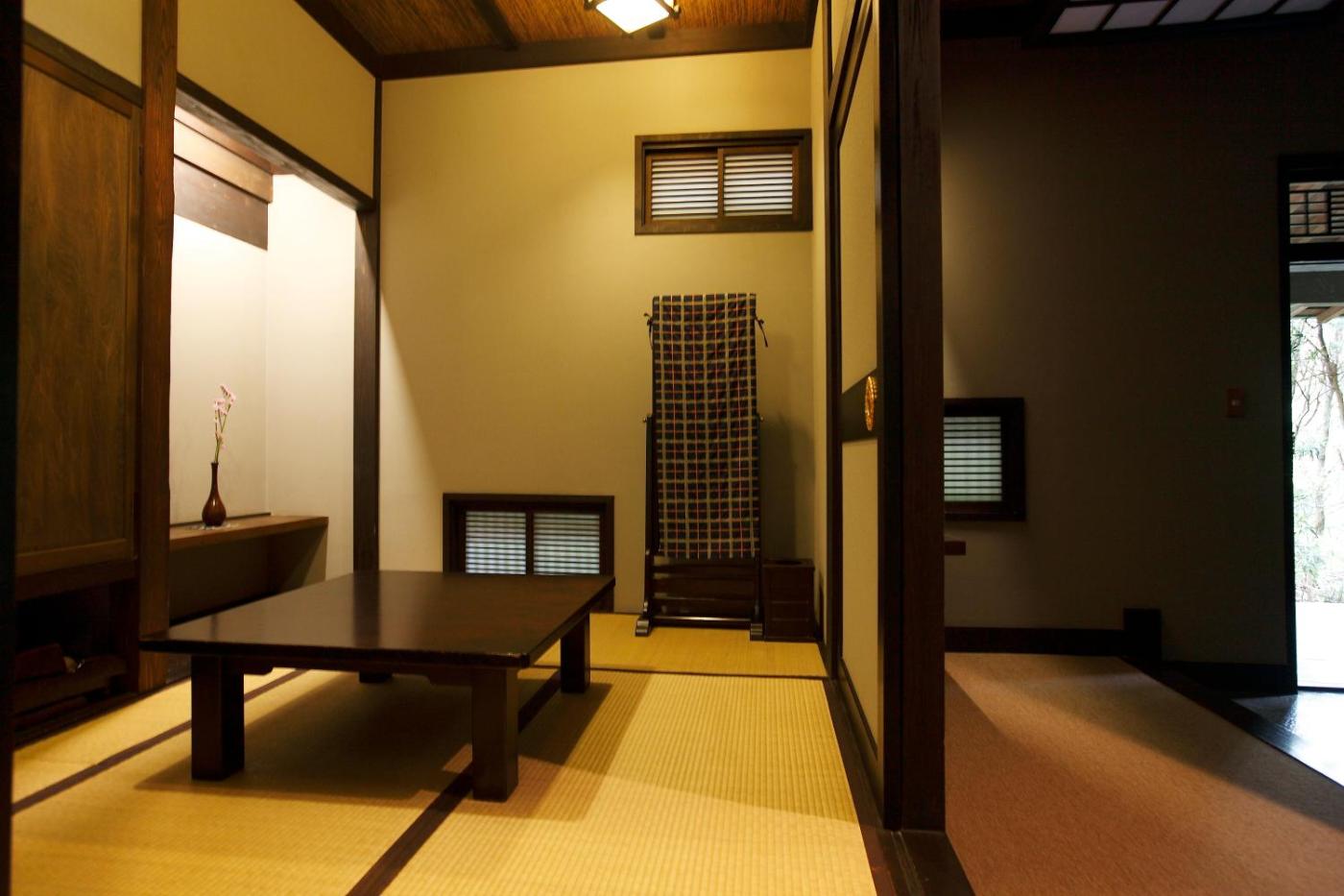 Japanese-Style Room with Open-Air Bath. Spacious room is fitted with a refrigerator, an electric kettle and air conditioningheating facilities. Featuring an open bath, the private bathroom also comes with a hairdryer and free toiletries. Fitted with tatami (woven-straw) flooring and futon bedding. ;