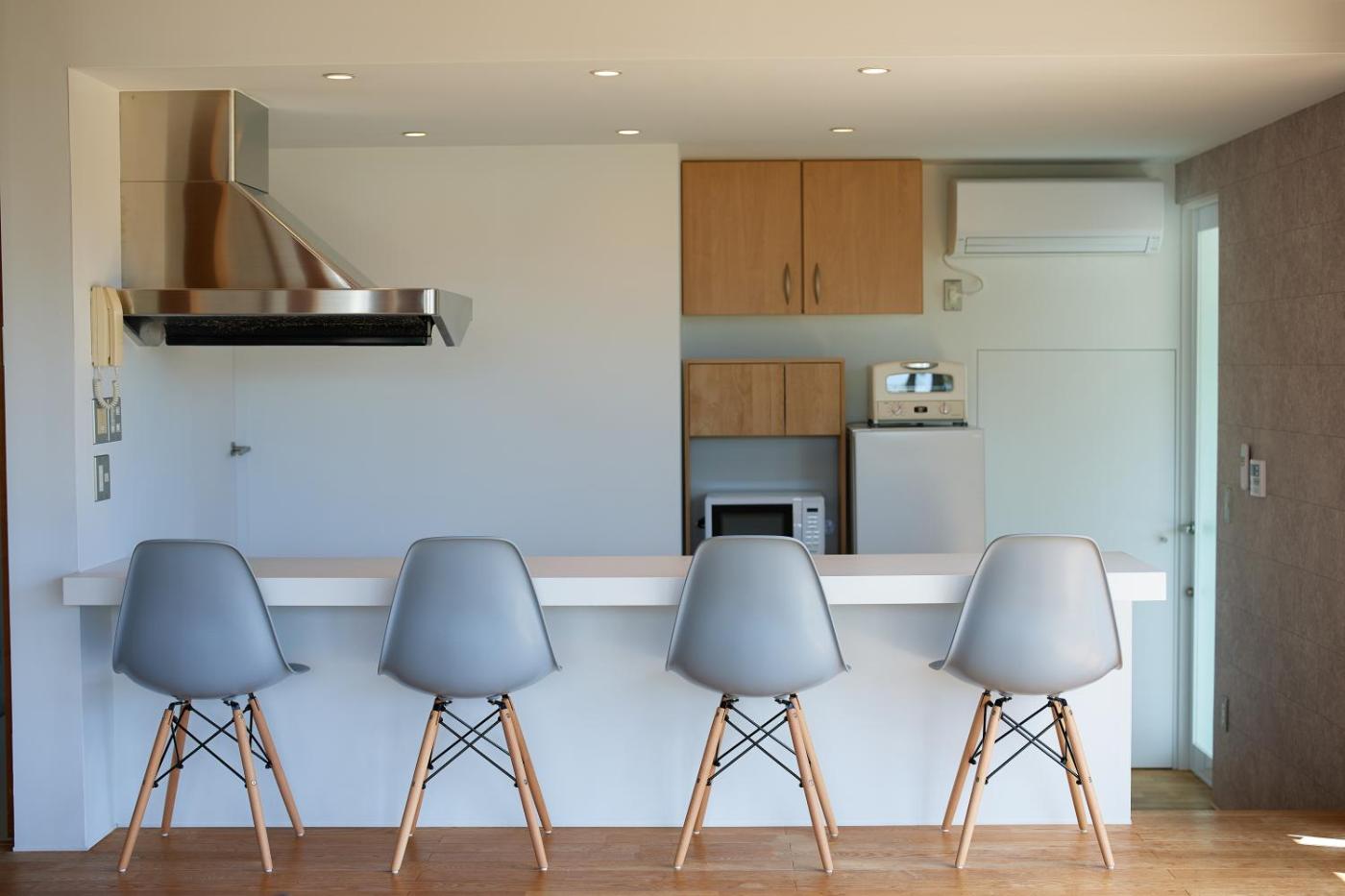 Two-Bedroom Villa. The hot tub is a top feature of this villa. Boasting a private entrance, this air-conditioned villa includes a kitchen, 2 bedrooms and 1 bathroom with a bath and a shower. Guests will find a refrigerator, kitchenware and a microwave in the kitchen. The villa also features a barbecue. The villa has a washing machine, tatami, a dining area as well as a terrace with sea views. The unit has 5 beds.
