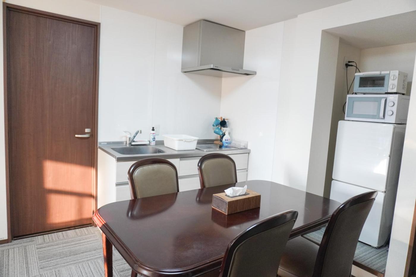 Apartment. This apartment is on the 2nd floor and has air conditioning, a hot tub, sofa, desk and flat-screen TV. The dining area and kitchen feature a microwave, stovetop, toaster, refrigerator and kitchenware. The bathroom features a hairdryer, towels, slippers and free toiletries. ;