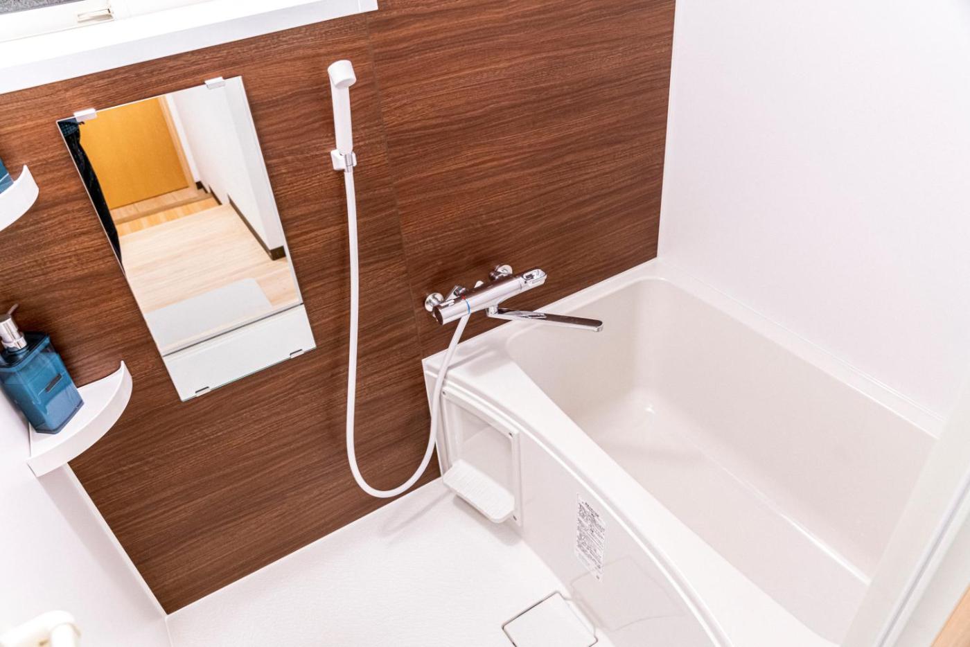 Family Room. The spacious family room offers air conditioning, tatami, as well as a private bathroom featuring a bath and a shower. The well-fitted kitchen features a refrigerator, kitchenware, a microwave and an electric kettle. The family room provides a dining area, a wardrobe and a terrace. The unit offers 2 beds and 6 futons.
