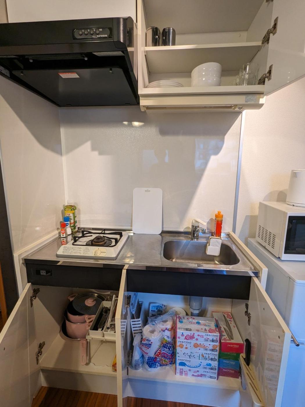 One-Bedroom Apartment. The air-conditioned apartment has 1 bedroom and 1 bathroom with a shower and a bidet. Guests can make meals in the kitchen that features a refrigerator, kitchenware, a microwave and an electric kettle. The apartment features a washing machine, a wardrobe, tumble dryer along with a balcony. The unit has 2 beds.