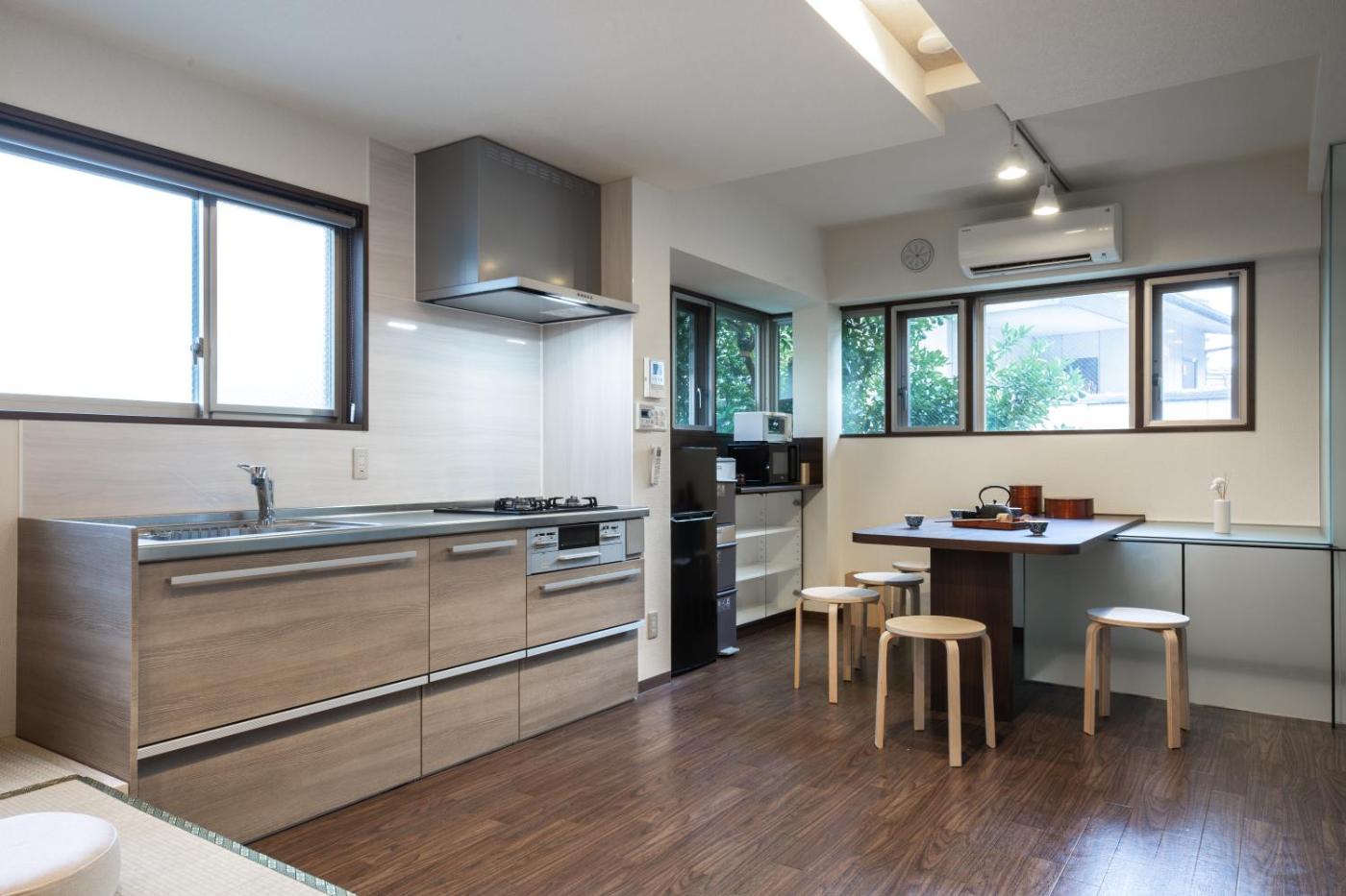 Apartment with Shower. This apartment includes 1 living room, 1 separate bedroom and 1 bathroom with a shower and free toiletries. The well-equipped kitchen has a stovetop, a refrigerator, kitchenware and a microwave. This apartment is air-conditioned and features a washing machine, tatami and city views. The unit has 3 beds. ;