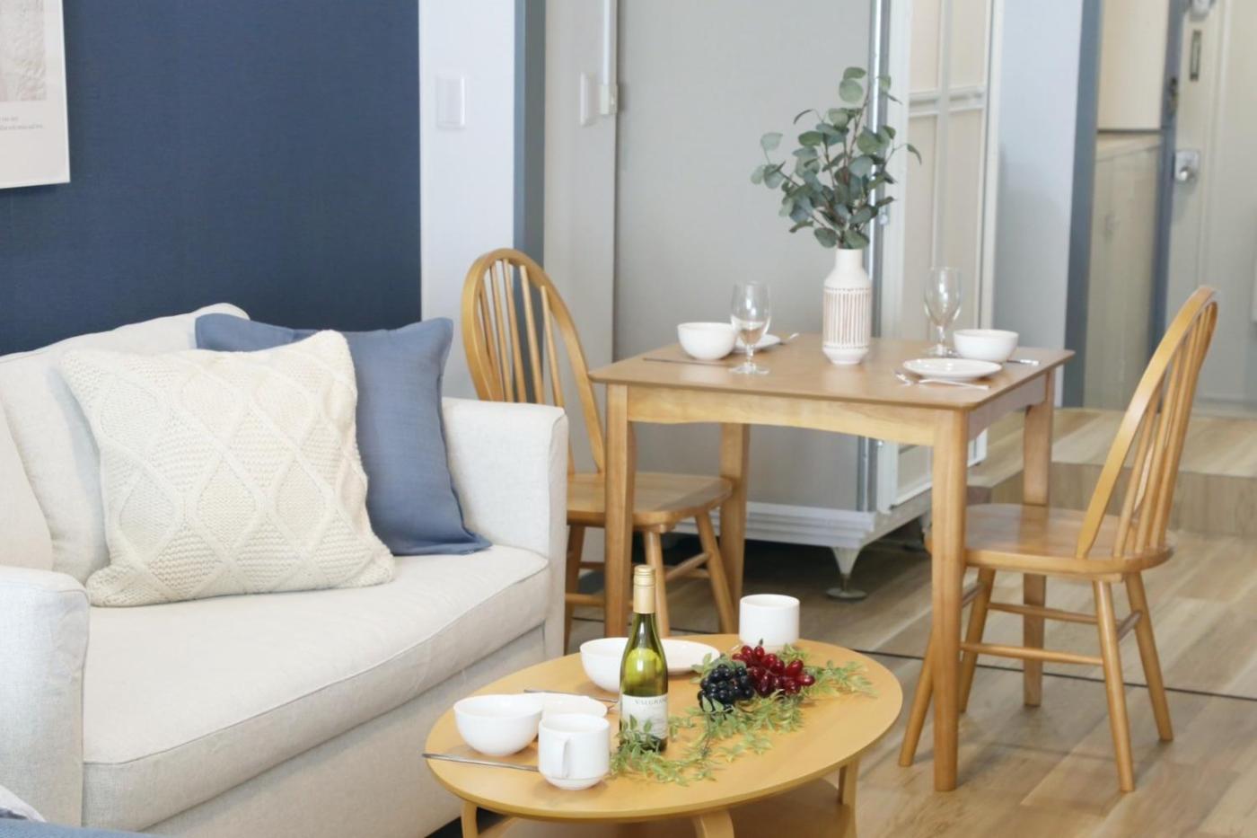 One-Bedroom Apartment. The air-conditioned apartment has 1 bedroom and 1 bathroom with a bath and a bidet. Meals can be prepared in the kitchen, which features a stovetop, a refrigerator, kitchenware and a microwave. The apartment features a washing machine and an electric kettle. The unit has 2 beds.