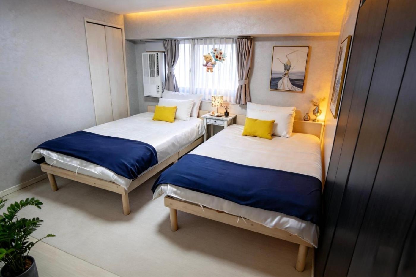 Two-Bedroom Deluxe Apartment with Balcony. This spacious apartment features 1 living room, 2 separate bedrooms and 1 bathroom with a bath and free toiletries. Guests will find a stovetop, a refrigerator, kitchenware and a microwave in the well-equipped kitchen. The apartment also comes with a barbecue. The air-conditioned apartment features a flat-screen TV, a washing machine, soundproof walls, a tea and coffee maker as well as garden views. The unit has 4 beds.